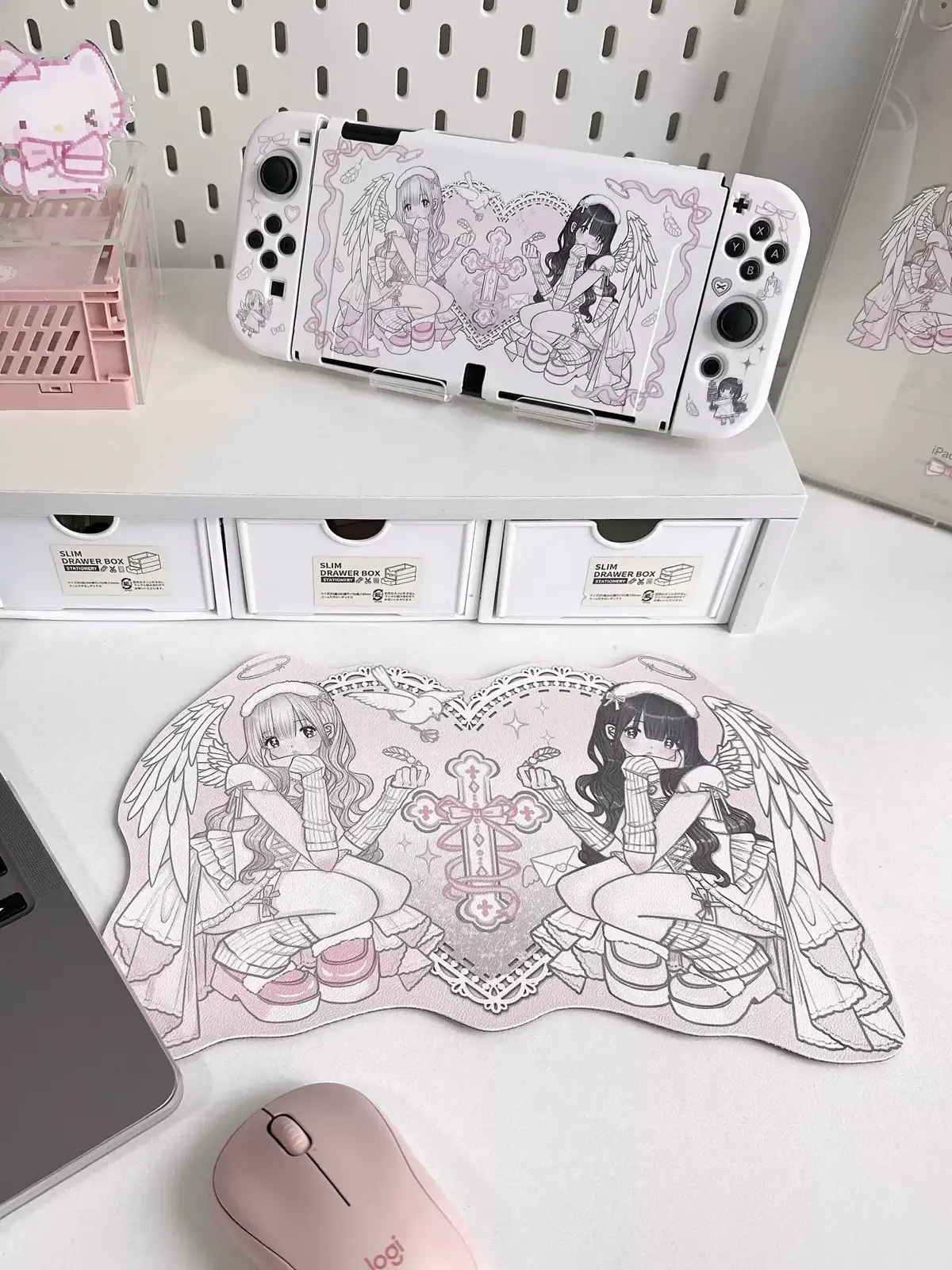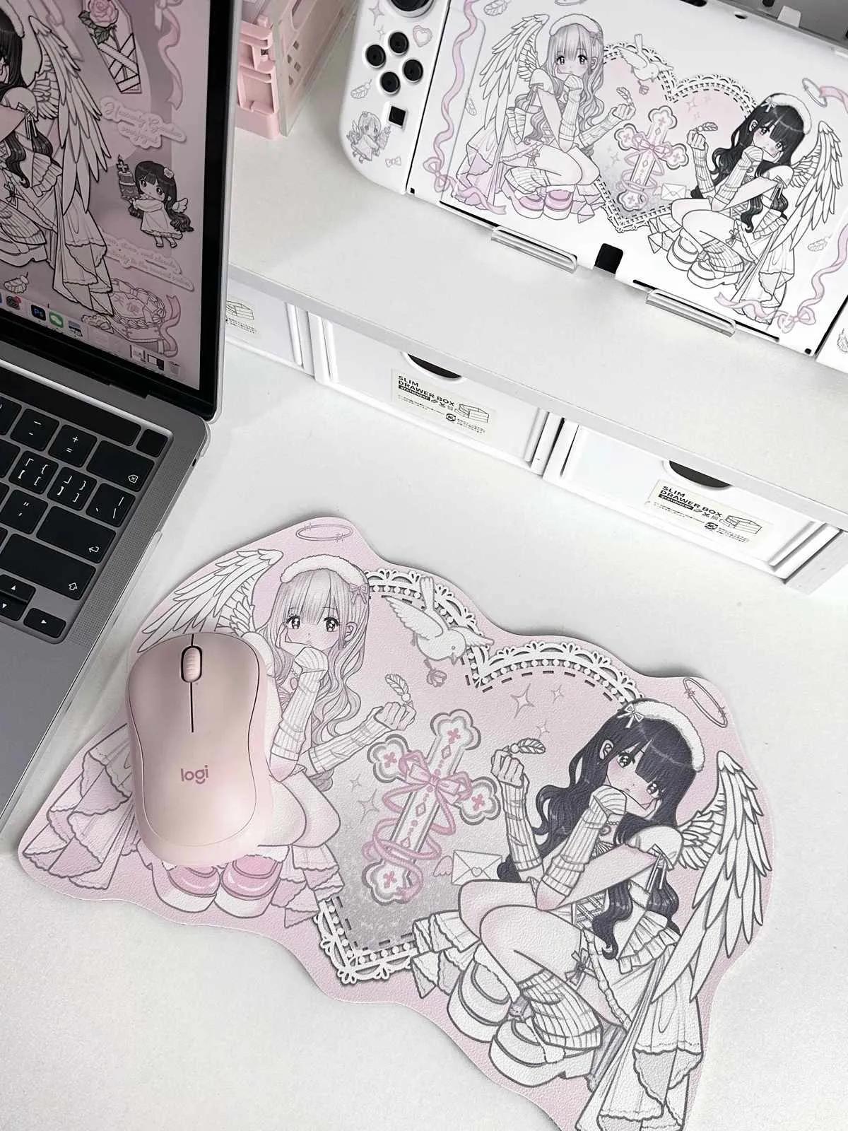 Upgrade your workstation with the Angel Girl Mouse Pad! Two angels are featured on this charming mouse pad. That one with beautiful black hair and the other with pink and white hair. Beautiful wings decorate both angels which adding to the enchanted ambiance. Charming bird and feather icons and a sophisticated envelope icon further accentuate the design. This mouse pad built up by premium PU leather and is both fashionable and long lasting. During use, the non-slip bottom guarantees that it remains firmly in place. Make your workstation a whimsical retreat and allow these angels beauty. Which is to stimulate your imagination each and every day!