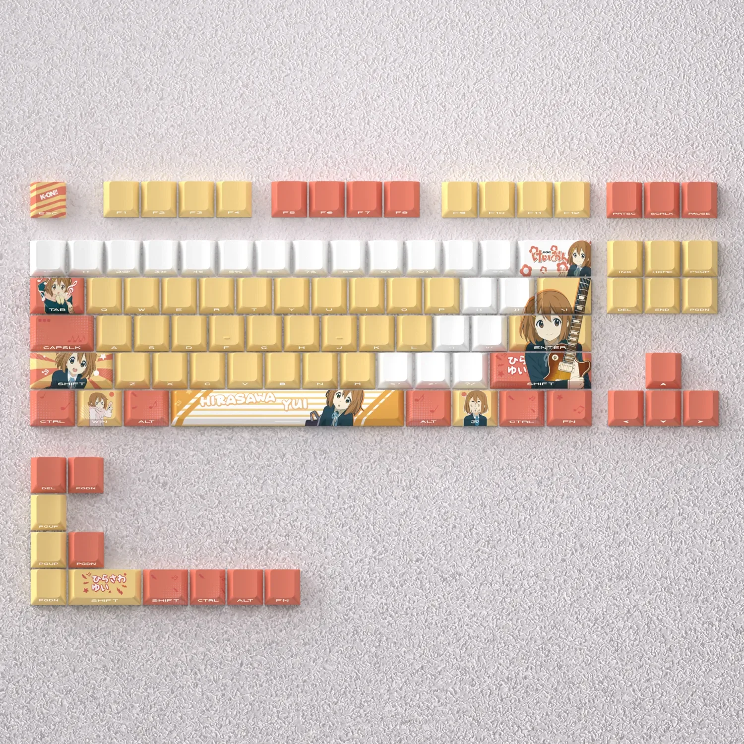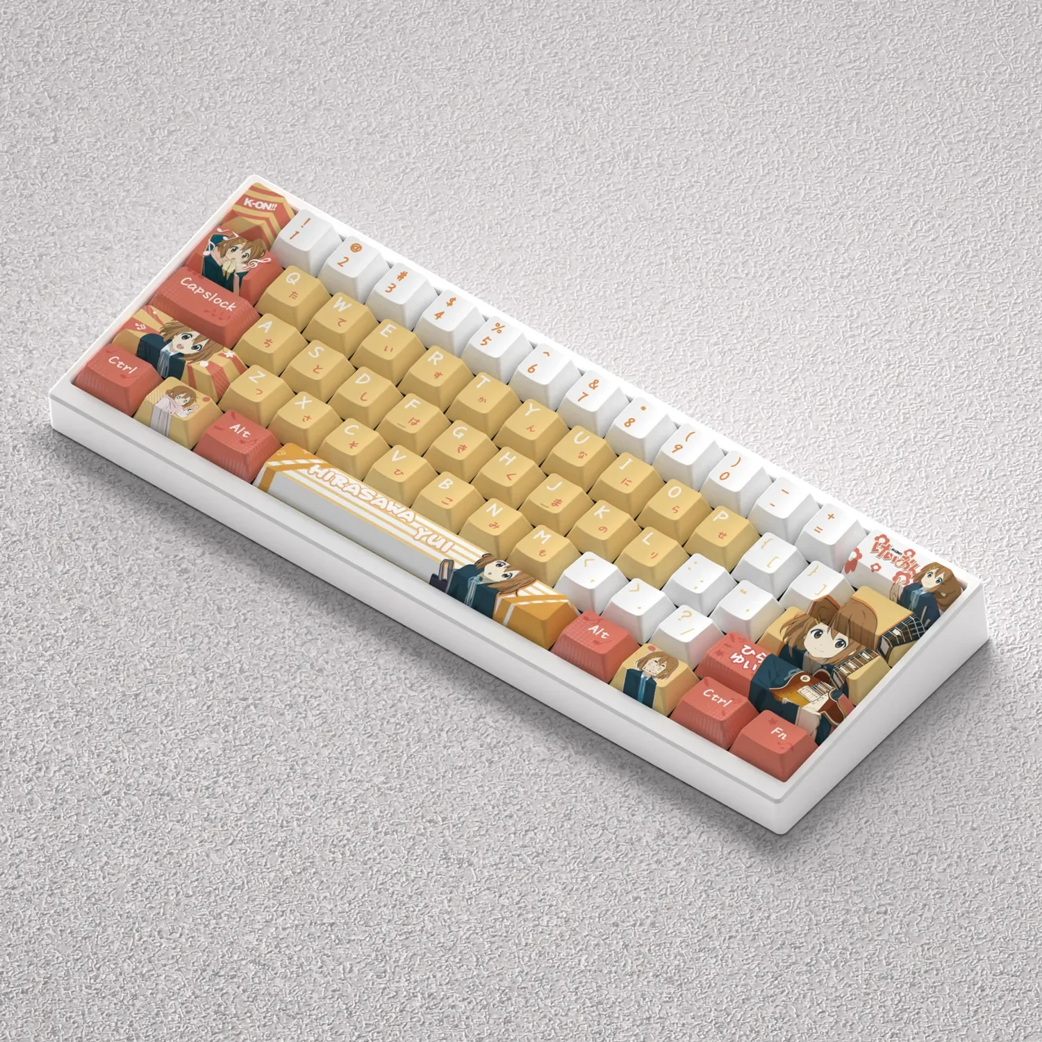 Unleash the cheerful spirit of Hirasawa Yui from K-On! onto your desk setup with this exquisite K-On!: Vibrant Yui Hirasawa Cherry Keycap Set. Designed for fans who adore anime, these vibrant anime keycaps transform your mechanical keyboard into a personal canvas of joy and nostalgia. Each Hirasawa Yui Keycap is crafted from durable PBT material, ensuring a long-lasting, smooth feel with every press, perfect for intense typing or gaming sessions. This unique K-On! Keycap Set brings a playful and artistic touch, making it an essential upgrade for any custom anime keyboard enthusiast. Express your fandom and creativity by personalizing your space. Specifically engineered as a 60% Keycap Set, it also fits 65% and 68% layouts, ensuring broad compatibility. Elevate your keyboard aesthetic and let Yui’s energy inspire your every keystroke.