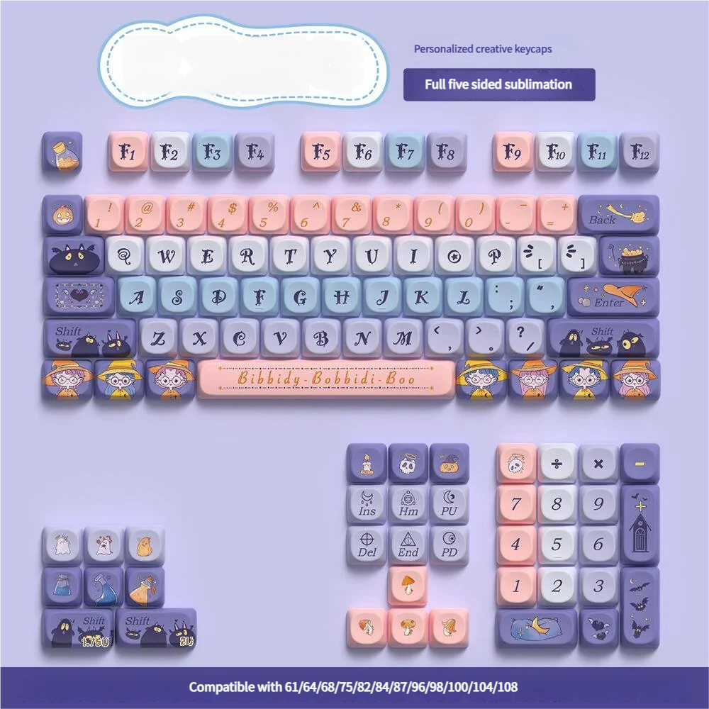 Embark on a whimsical journey and transform your keyboard into a magical spellcasting companion with Apprentice Witch MOA Keycap Set. Crafted from durable PBT material using advanced dye-sublimation technology, these PBT dye-sub keycaps feature vibrant, fade-resistant designs. The unique MOA profile keycaps offer a comfortable and ergonomic typing experience, perfect for long creative sessions. Immerse yourself in a world of pastel hues and charming arcane symbols, bringing an enchanting witchy aesthetic to your custom keyboard. Each keycap is a tiny canvas, depicting whimsical magic that sparks imagination. This whimsical keyboard set is designed to inspire creativity and add a touch of magic to every keystroke. Which making your workspace a hub for imaginative exploration. Elevate your setup with these high-quality Apprentice Witch Keycaps and let your imagination take flight.