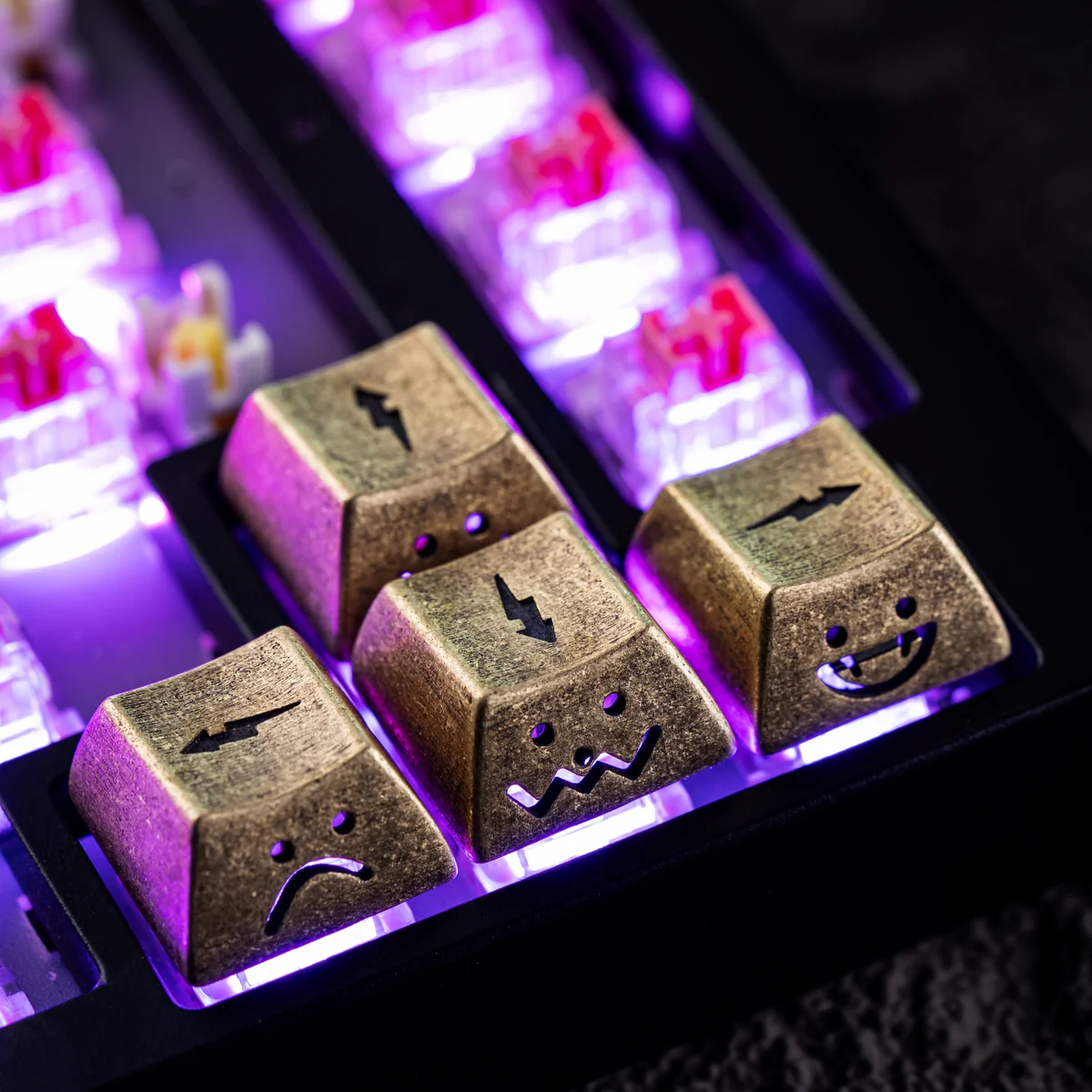 Discover a new dimension of keyboard aesthetics with our Luminous Lightning Arrow Key Keycaps, where raw power meets intricate artistry. Each piece is a testament to unique craftsmanship, embodying an industrial-artisan fusion with captivating lightning motifs. These Artisan Copper Keycaps are meticulously handcrafted from premium pure copper alloys, offering a distinct visual and tactile experience. Designed as Translucent MX Keycaps, their hollow, side-engraved details allow your keyboard’s backlight to shine through, creating a mesmerizing luminous effect. Perfect for gamers and collectors alike, these Custom Directional Keys transform your setup into a personalized masterpiece. Which elevating every press with unparalleled style and a touch of uniqueness.