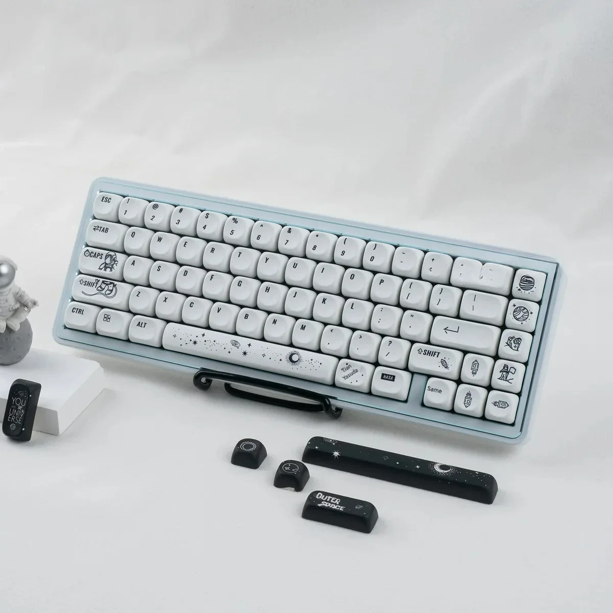 Unleash the wonder of deep space at your fingertips with our Astronaut keycap set. This captivating collection transforms your keyboard into a portal for cosmic exploration, featuring stylized astronauts and celestial bodies rendered in vibrant hues. Designed for enthusiasts and collectors alike, these custom keycaps invite you to personalize your setup with a touch of artistic flair. Crafted from high-quality PBT keycaps, this 130-key set promises exceptional durability and a premium feel that resists shine over time. The legends are applied using advanced dye-sublimation, ensuring the intricate space-themed designs remain crisp and vibrant without fading. Experience superior typing comfort with the ergonomic MOA profile, meticulously sculpted to provide a natural and satisfying keying experience. Elevate your space themed keyboard with a set that combines robust performance with breathtaking aesthetics.