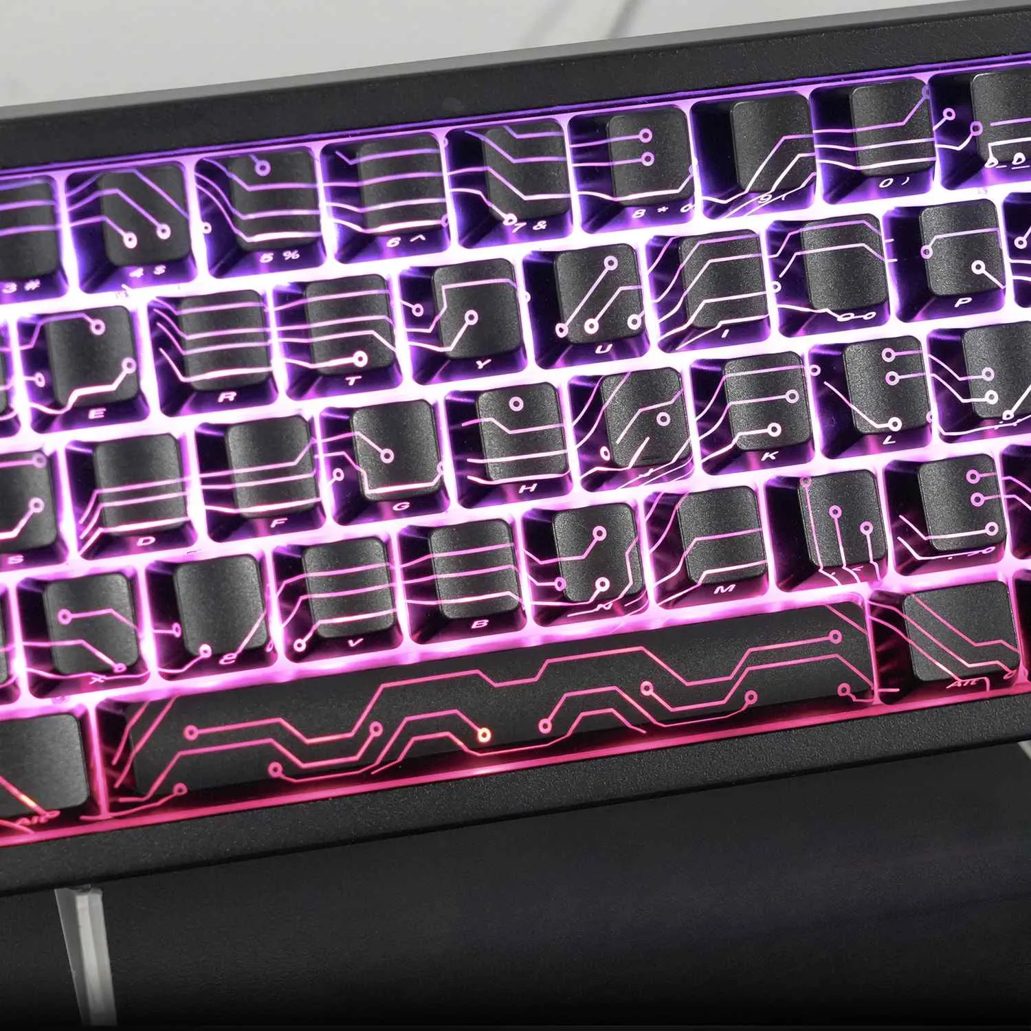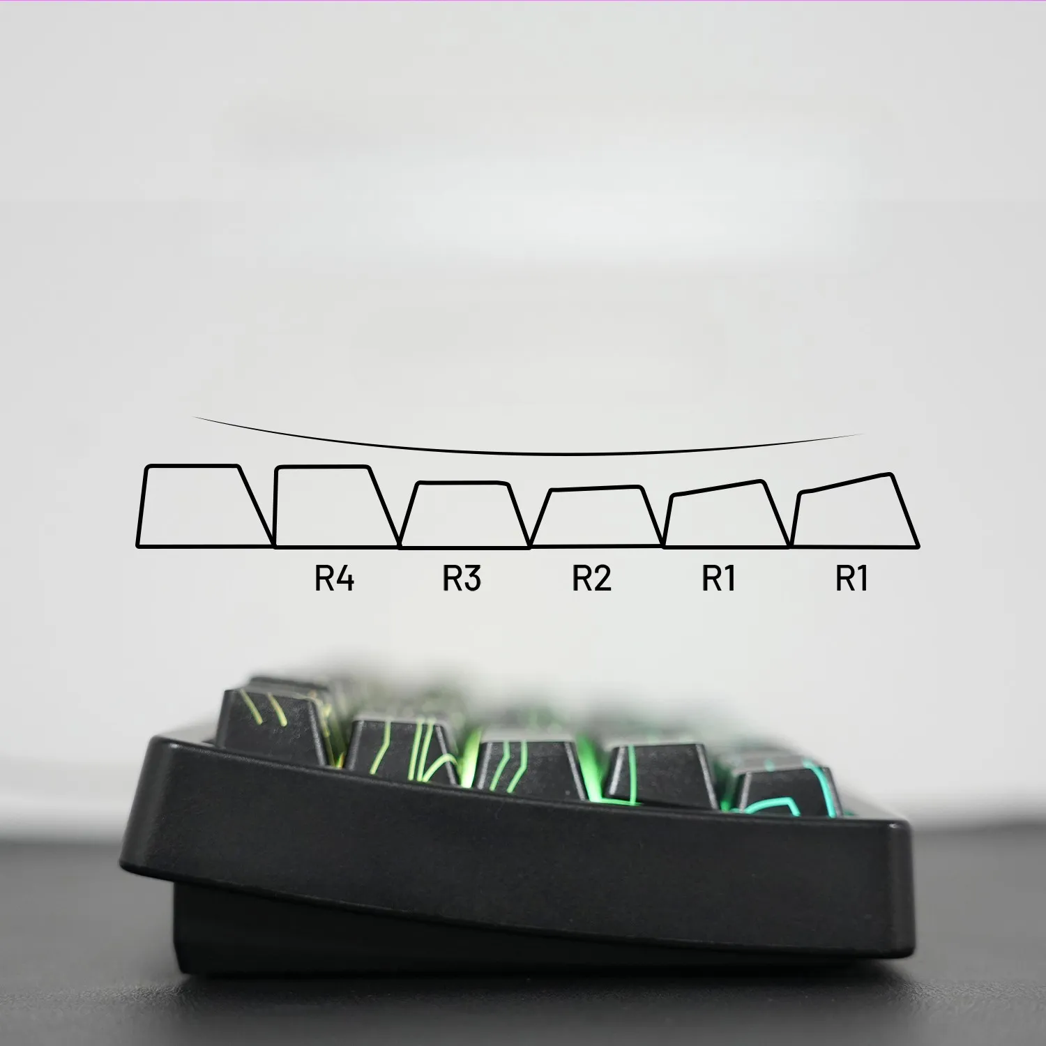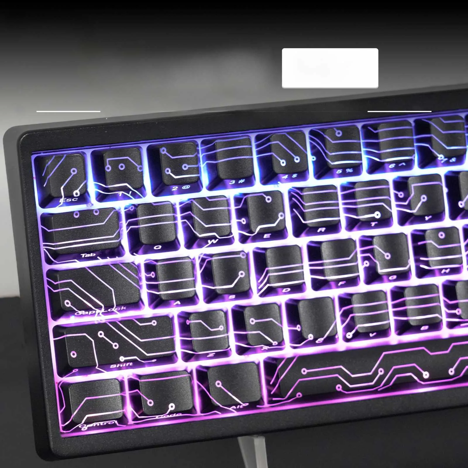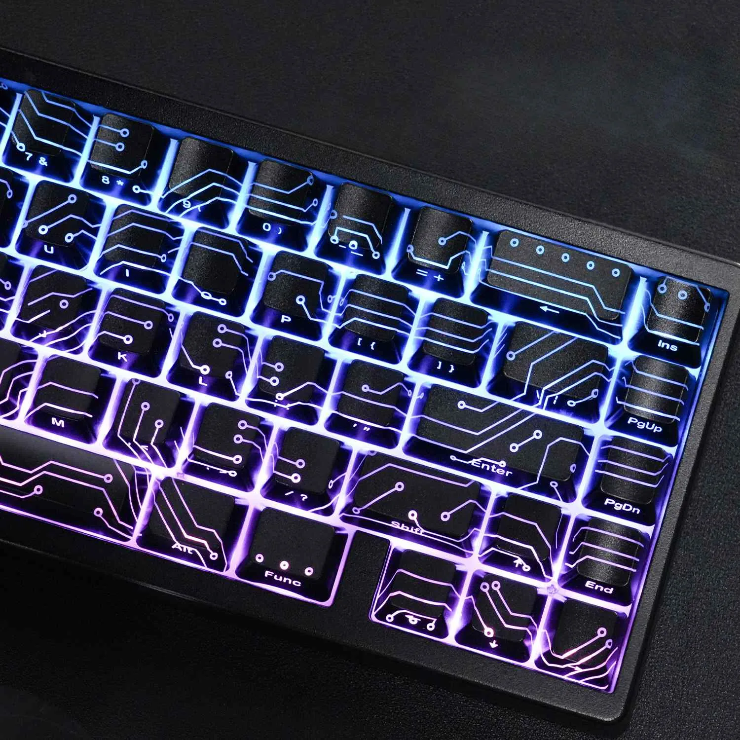 Bring futuristic flair to your keyboard with the Black Electronic Vision OEM Keycap Set! This striking design blends streamlined ingenuity with contemporary artistry. Its startling basis of deep black is complemented by elaborate line art patterns. That offer visual depth and uniqueness. For daily usage, side lettering maintains sharp readability while guaranteeing a clean and minimalist look. These keycaps’ long-lasting durability and shine resistance are ensured by their robust PBT construction. Every keystroke is comfortable and fluid thanks to the ergonomic OEM profile. That making it ideal for both work and pleasure. Your keyboard becomes a statement piece of refinement, originality and forward-thinking flair when you use Black Electronic Vision.