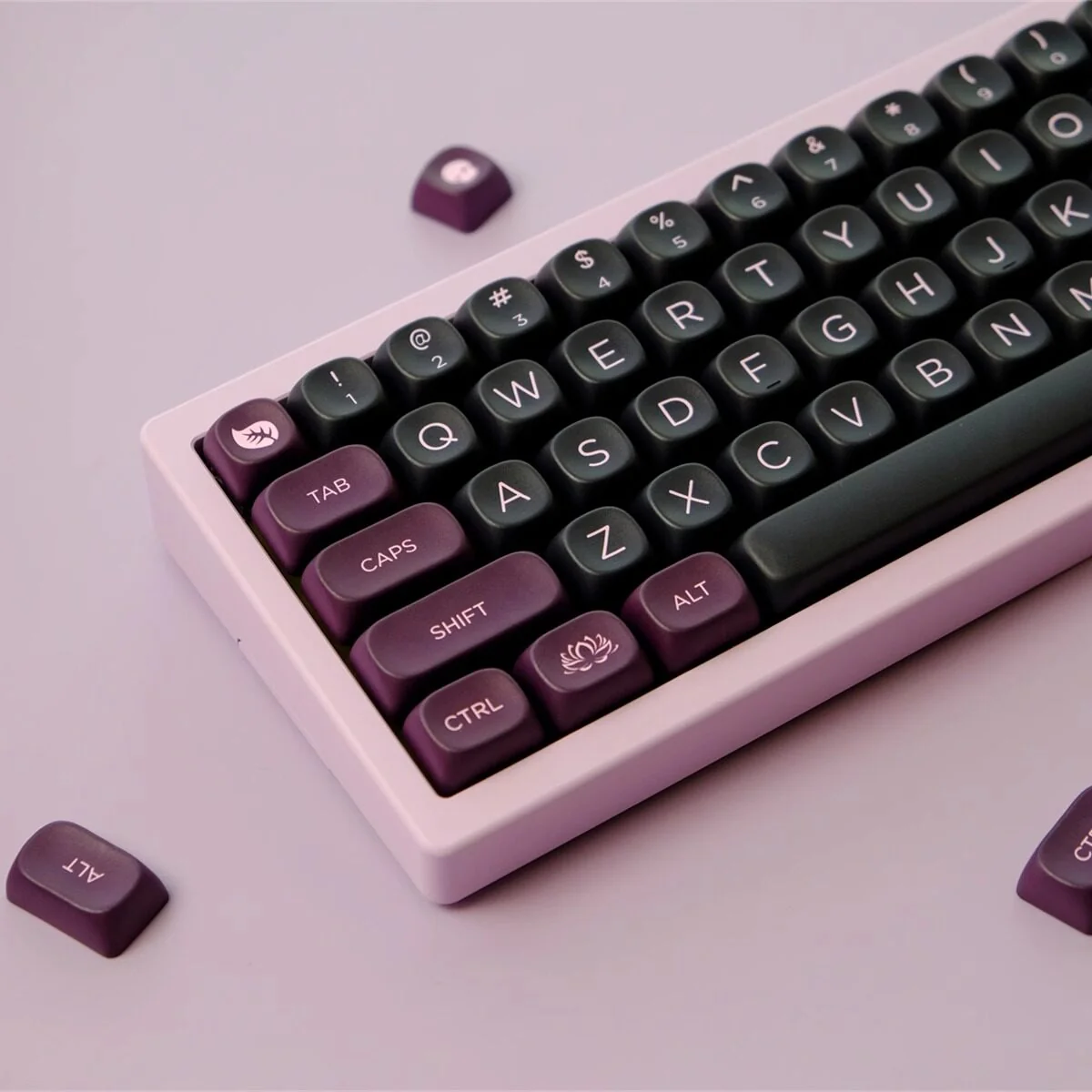 Immerse yourself in profound elegance and serene mystery with our Black Lotus MOA Keycap Set. Inspired by the mystical Black Lotus, this collection transforms your mechanical keyboard into a true work of art. Crafted from premium PBT material, these durable PBT keycaps offer exceptional longevity and a superior typing feel, resistant to shine and wear. The advanced dye-sublimation process ensures that the intricate lotus motifs, in deep. Which mysterious black and subtle charcoal tones, are permanently fused into each keycap, promising lasting vibrancy without fading. Experience ergonomic comfort and a distinctive aesthetic with the unique Dye-sub MOA profile, designed for a comfortable typing experience and a sleek, uniform look. Elevate your desk’s aesthetic and inspire tranquility.