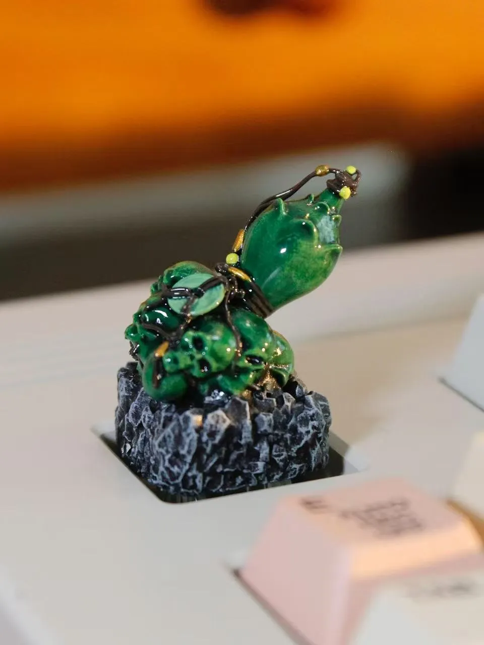 Unleash your creativity with the Black Myth: Wukong Gourd Series Keycaps, inspired by the iconic game! Plaguebane Gourd, Jade Lotus Gourd, Xiang River Goddess Gourd or Trailblazer’s Scarlet Gourd are the four distinctive varieties from which to choose. Every keycap has a unique gourd icon design that symbolizes a strong tool in the game. The beautiful stone texture on the keycap’s base gives your keyboard more depth and realism. These 3D printed keycaps are made of premium resin and are both aesthetically pleasing and long lasting. Transform your typing experience with this exciting selection. Which is suitable for any fan as it seamlessly combines gaming aesthetics and usefulness!
