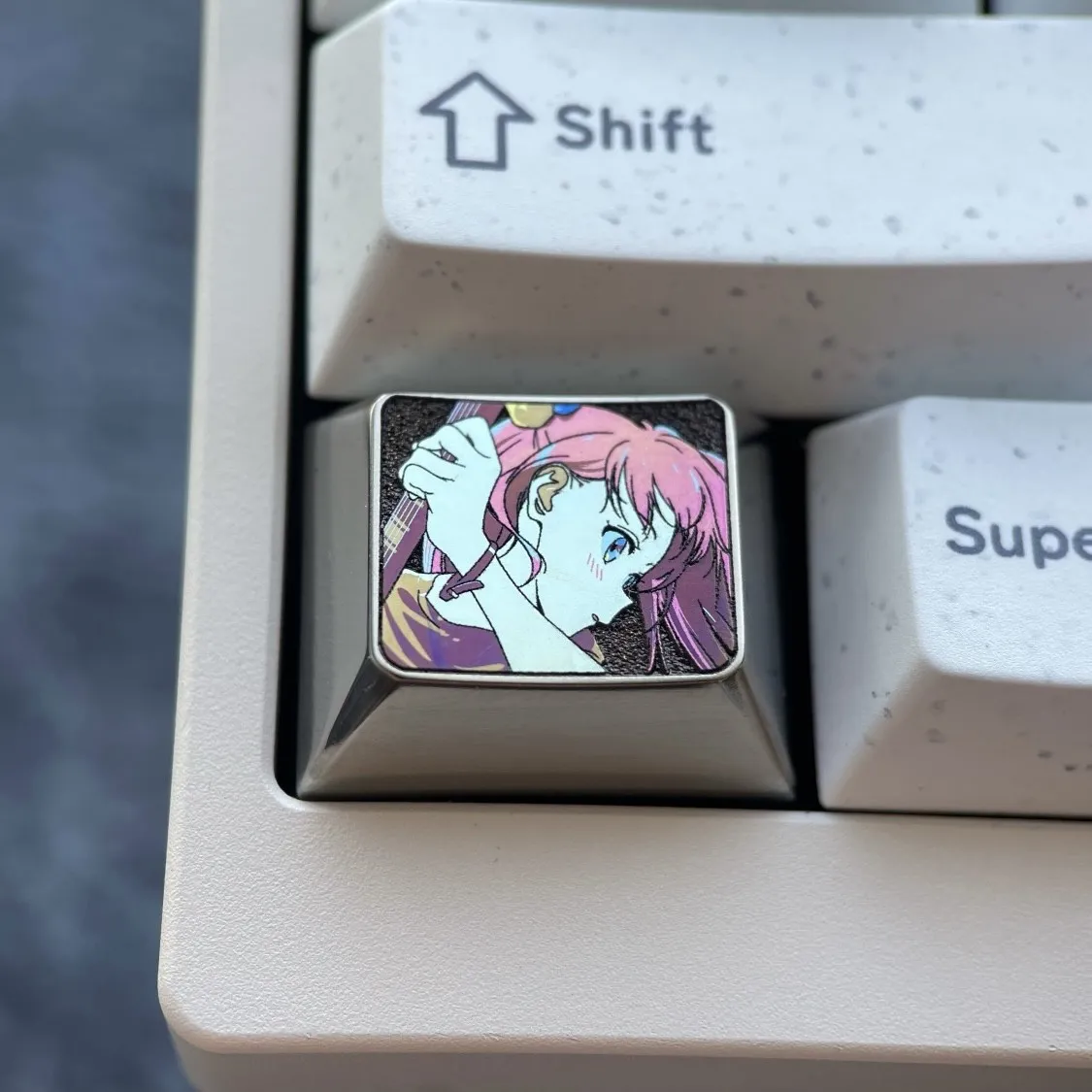 Unleash your creativity with the stunning Bocchi the Rock!: Hitori Gotoh Control Key Keycaps! With their eye-catching character symbol design. That these keycaps come in two eye-catching colors: Red Ice Crystal and Side Polished. Your keyboard is given a whimsical touch by character’s vivid pink hair. With her endearing position while holding a musical instrument. The design really pops against a sleek black backdrop. That adding to the visual appeal of your arrangement. These keycaps are a distinctive addition because of the depth added by the 3D structure. Because they are made of premium titanium alloy that they are long-lasting and durable. These keycaps are ideal for Bocchi the Rock enthusiasts since they elevate typing by fusing style and utility!