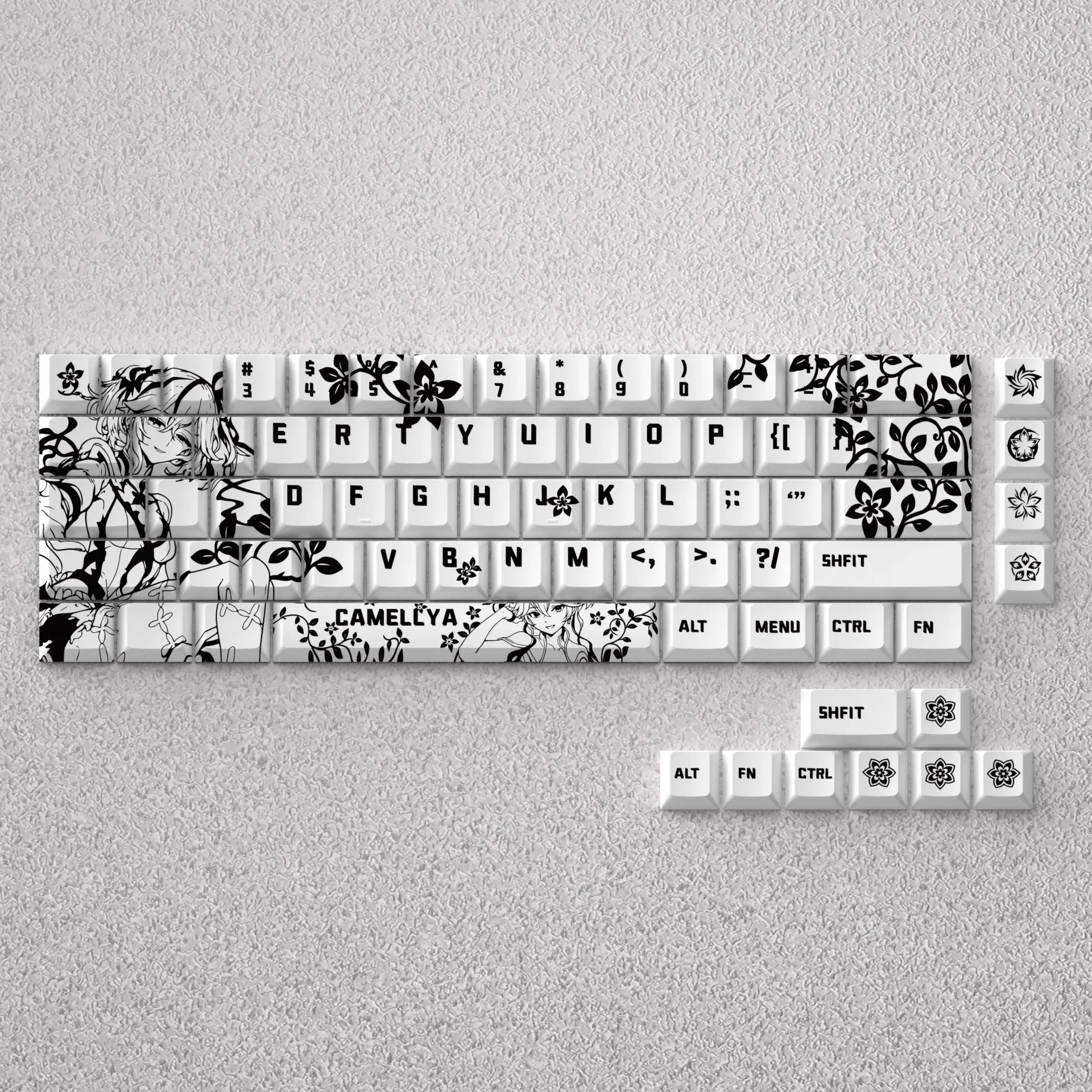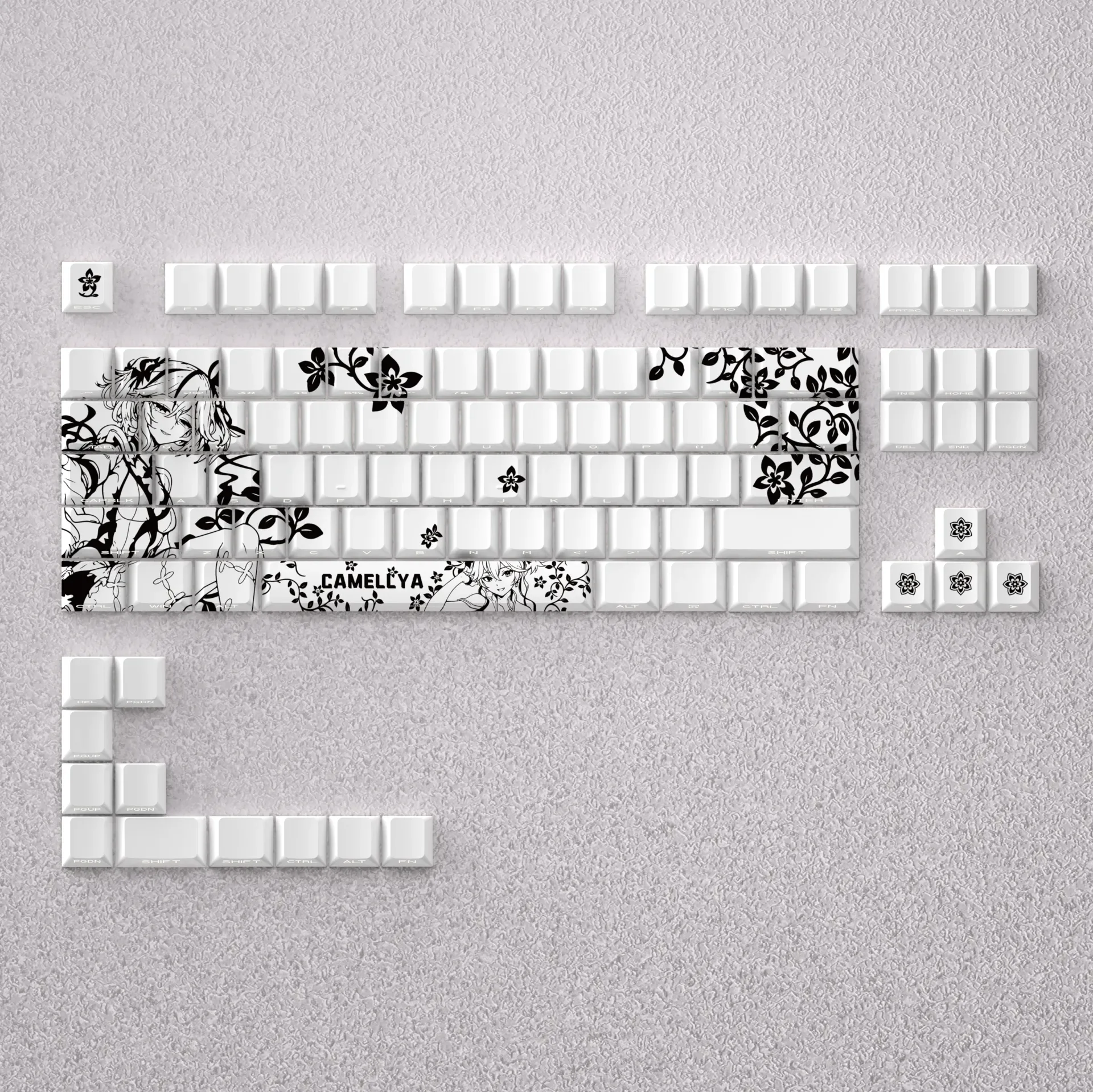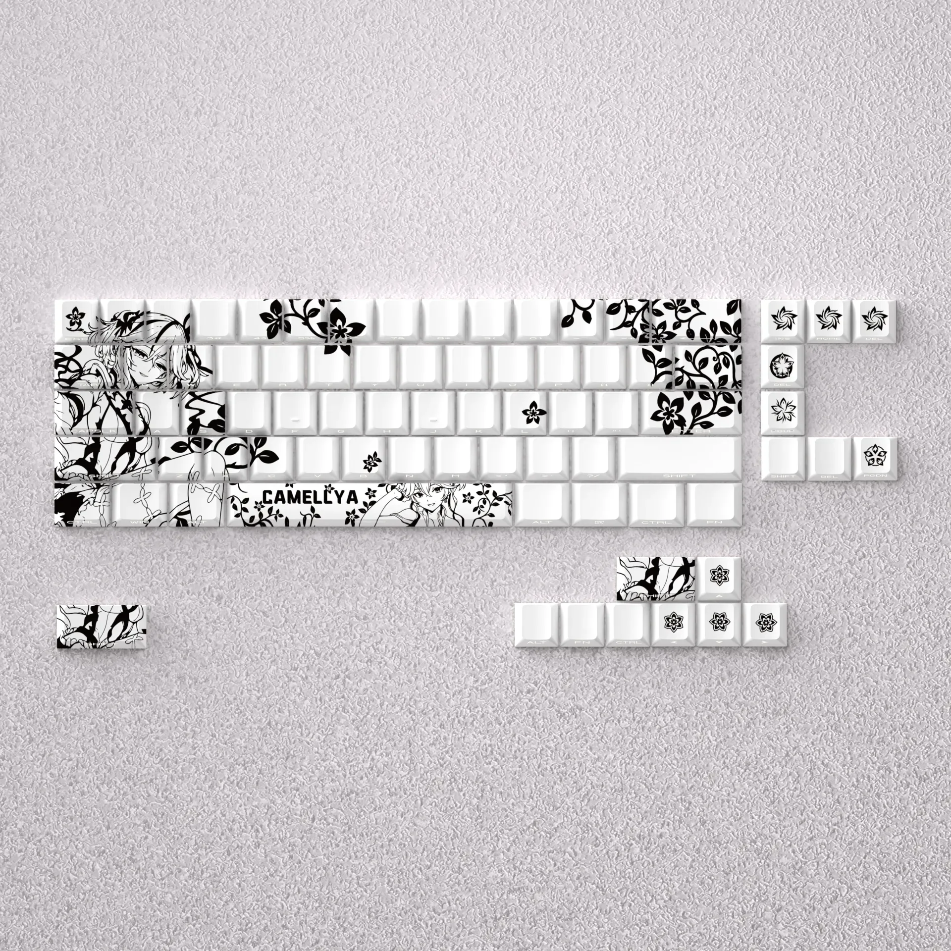 Elevate your daily typing with Wuthering Waves: Camellya Cherry Keycap Set, a meticulously crafted keycap set inspired by the serene beauty of anime. Each keycap embodies subtle elegance, designed to transform your personalized workspace into a tranquil retreat. Experience the quiet sophistication of these nature-inspired keycaps, where every detail reflects artistic dedication and a commitment to quality. Beyond their visual appeal, these Wuthering Waves: Camellya Cherry Keycap Set offer a premium typing experience. The opaque keycaps ensure a clean, minimalist aesthetic, free from backlight bleed, enhancing the overall professional and premium look of your setup. Perfectly suited as a 60% keycap set or for 65% mechanical keycaps, they are also compatible with 68-key layouts. Install these elegant keycaps and imbue your compact keyboard with unparalleled grace, offering a deeper connection to natures calm.