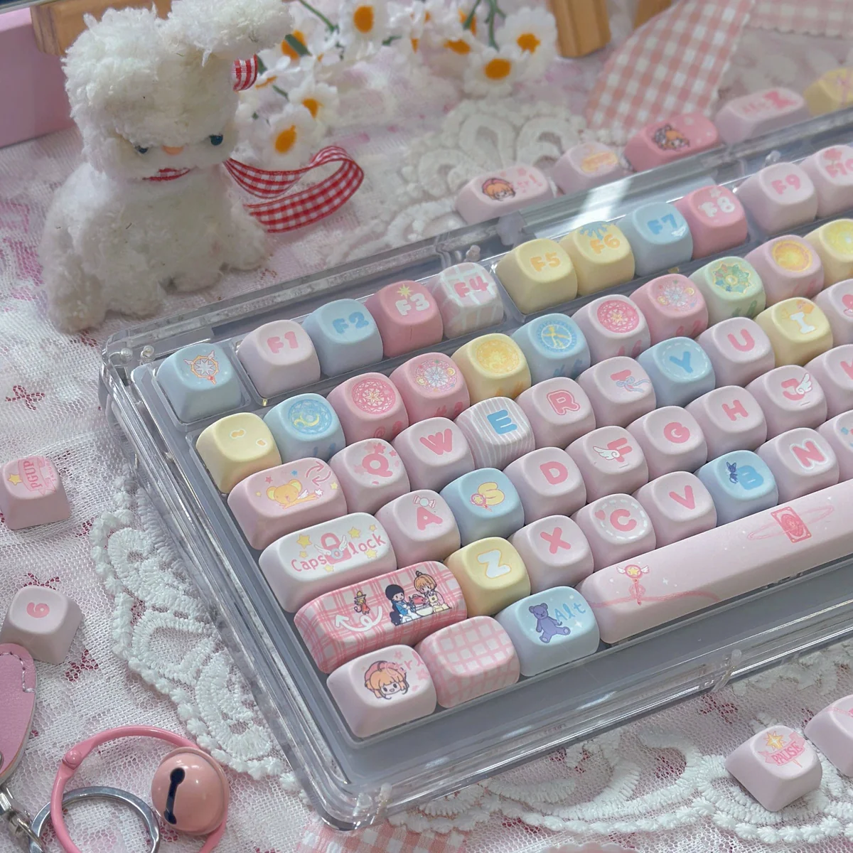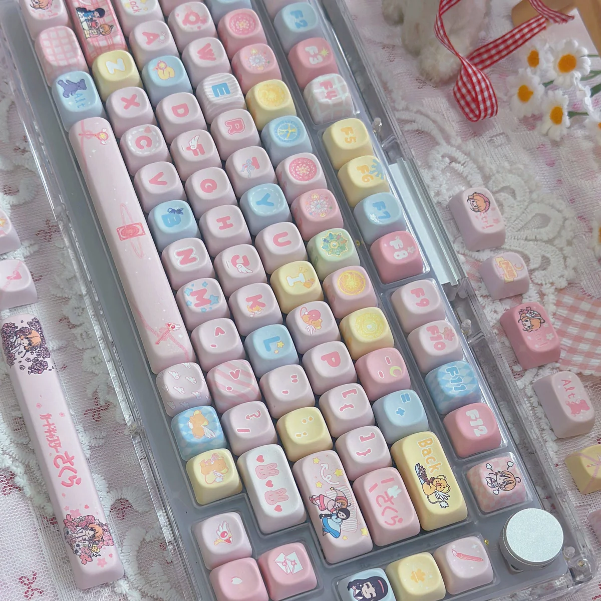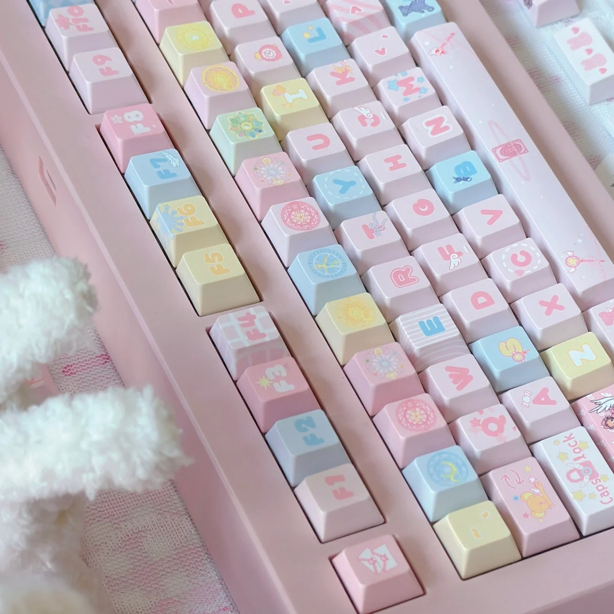 Step into a world of pure enchantment and relive cherished memories with our Cardcaptor: Characters Anime Series Keycap Set. This complete Cardcaptor Sakura PBT Keycap Set is meticulously designed to infuse your keyboard with the whimsical magic of the beloved anime. Crafted from durable PBT material using advanced dye-sublimation technology, these Sakura Anime Keycaps boast vibrant. That fade-resistant characters and magical symbols in enchanting pastel colors. Each 128-key Cherry Profile set offers a premium typing experience, transforming your desk into a canvas of nostalgic charm. These aren’t just keycaps; they are a celebration of the magical girl spirit. Perfect for collectors and fans seeking to personalize their setup with high-quality, artistic flair.