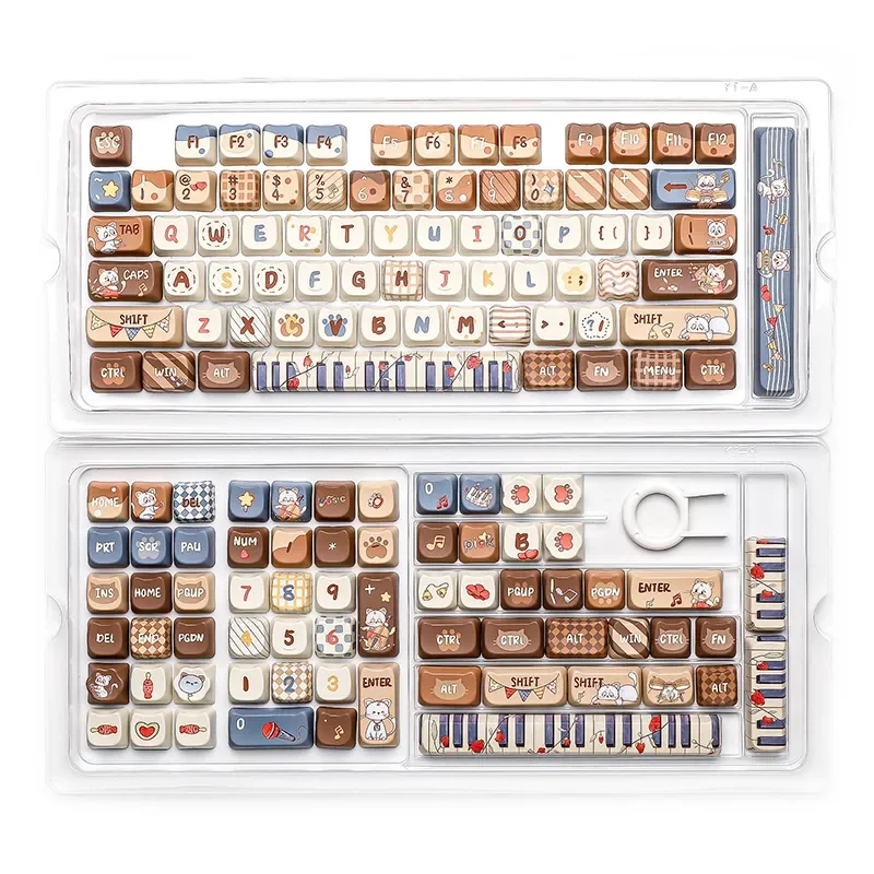 Bring a symphony of delight to your mechanical keyboard with our Whimsical Cat Musician MAO Keycap Set. Designed for those who cherish unique accessories and artistic expression, these custom keycaps transform your desktop into a vibrant stage. Crafted from durable PBT keycaps, each piece features advanced dye-sublimation, ensuring the playful feline musicians colorful details remain vivid and resistant to wear. The unique MAO profile offers a distinct aesthetic and comfortable feel, enhancing your typing experience. These cat keycaps celebrate creativity and add a touch of harmonious charm to any setup. Experience the joy of watching a whimsical cat concert unfold with every press, turning mundane tasks into moments of playful inspiration. Its more than just a set of keycaps; its an invitation to a delightful, artistic world right at your fingertips.