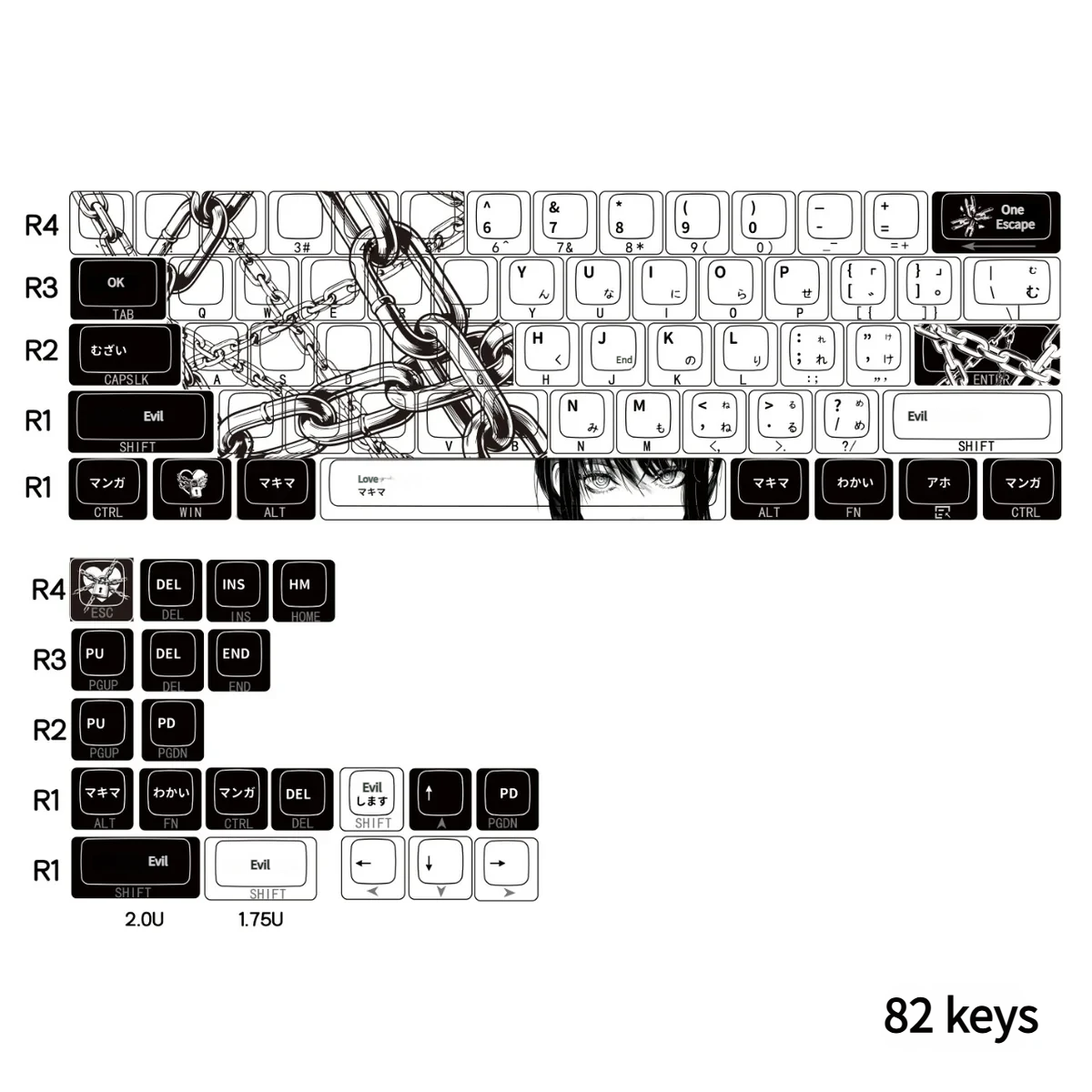 Keycap Set Compatible With 60-68: This Version was including Full Set Keycaps (82pcs Keycaps) ONLY.