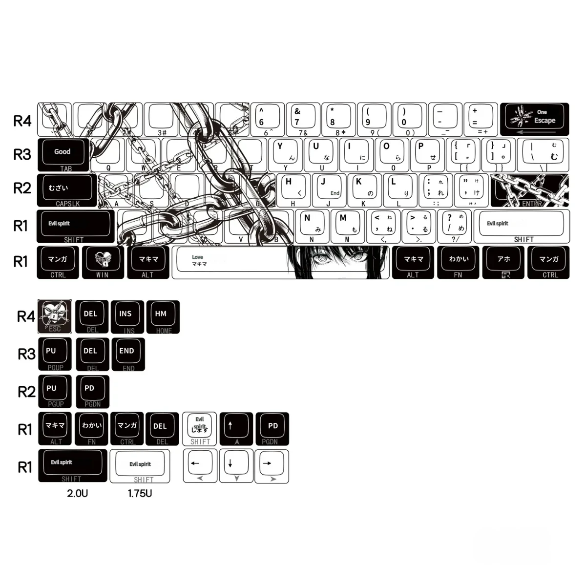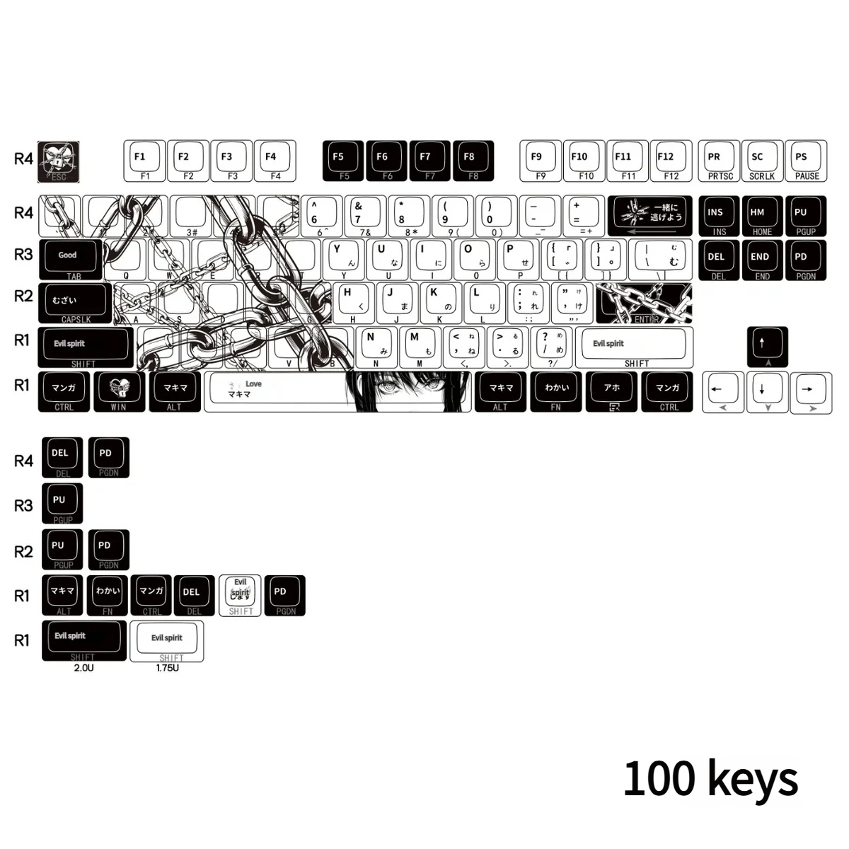 Immerse your desktop in the enigmatic allure of Makima with Chainsaw Man: Chain Makima Cherry Keycap Set. Crafted for devoted fans of Chainsaw Man, these PBT side-lit keycaps bring the dark elegance. Which captivating mystery of the iconic character directly to your fingertips. Each keycap features translucent, side-engraved legends, designed to brilliantly showcase your keyboard’s backlighting and create a truly immersive anime keyboard aesthetic. Experience a thrilling visual journey with every press, perfect for gaming sessions, dedicated collectors. The robust PBT material ensures lasting durability and a premium feel, while the unique side-lit design provides a subtle yet powerful statement. Transform your keyboard into a piece of art that embodies the thrilling spirit of Chainsaw Man. Get ready to ignite excitement with this stunning collection of Chainsaw Man keycaps.