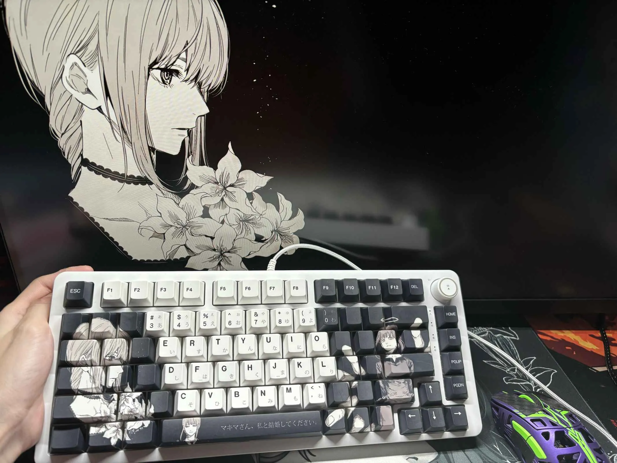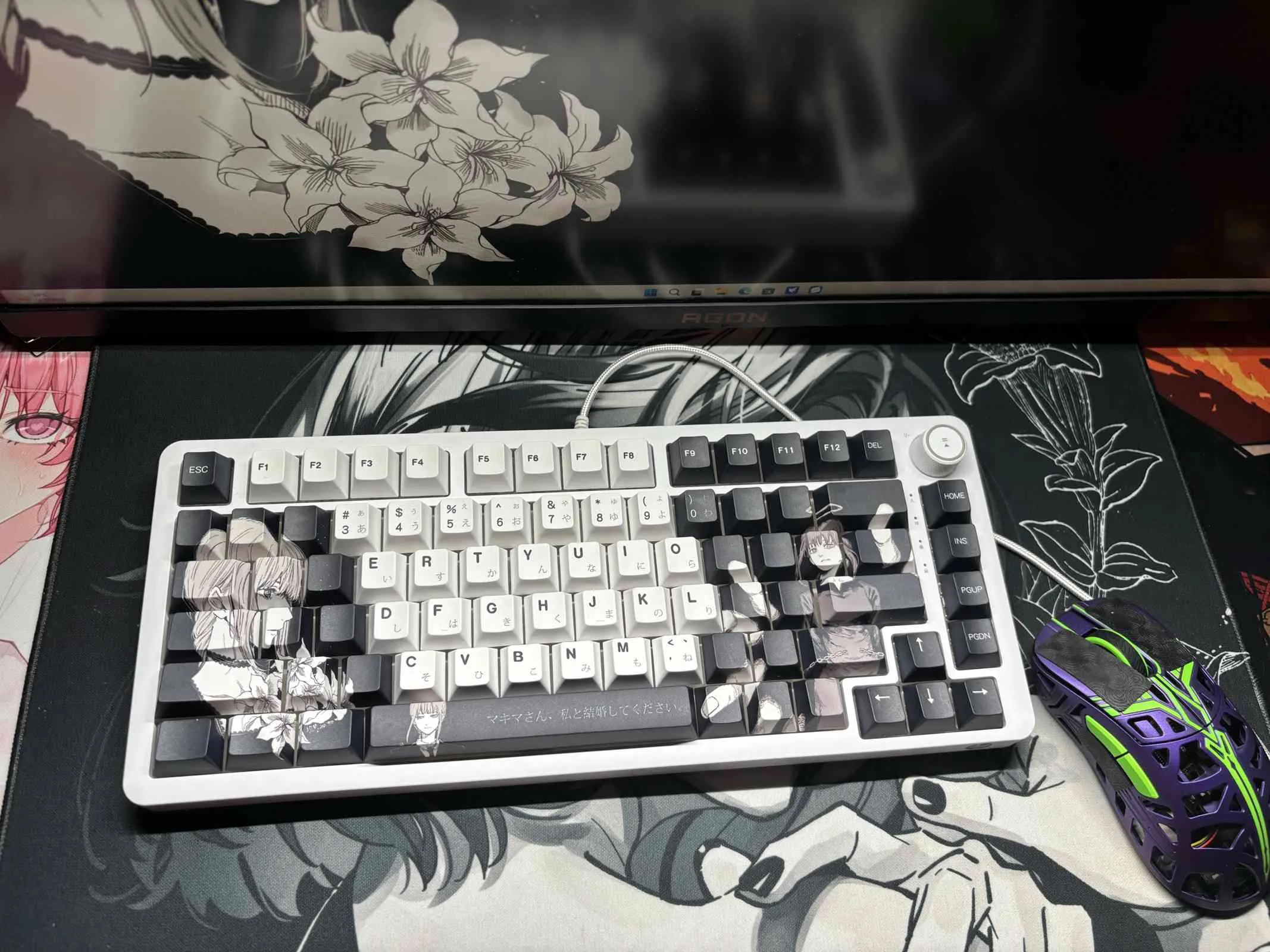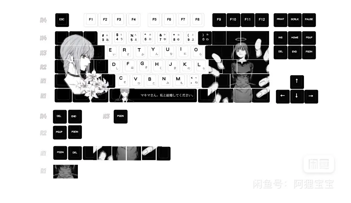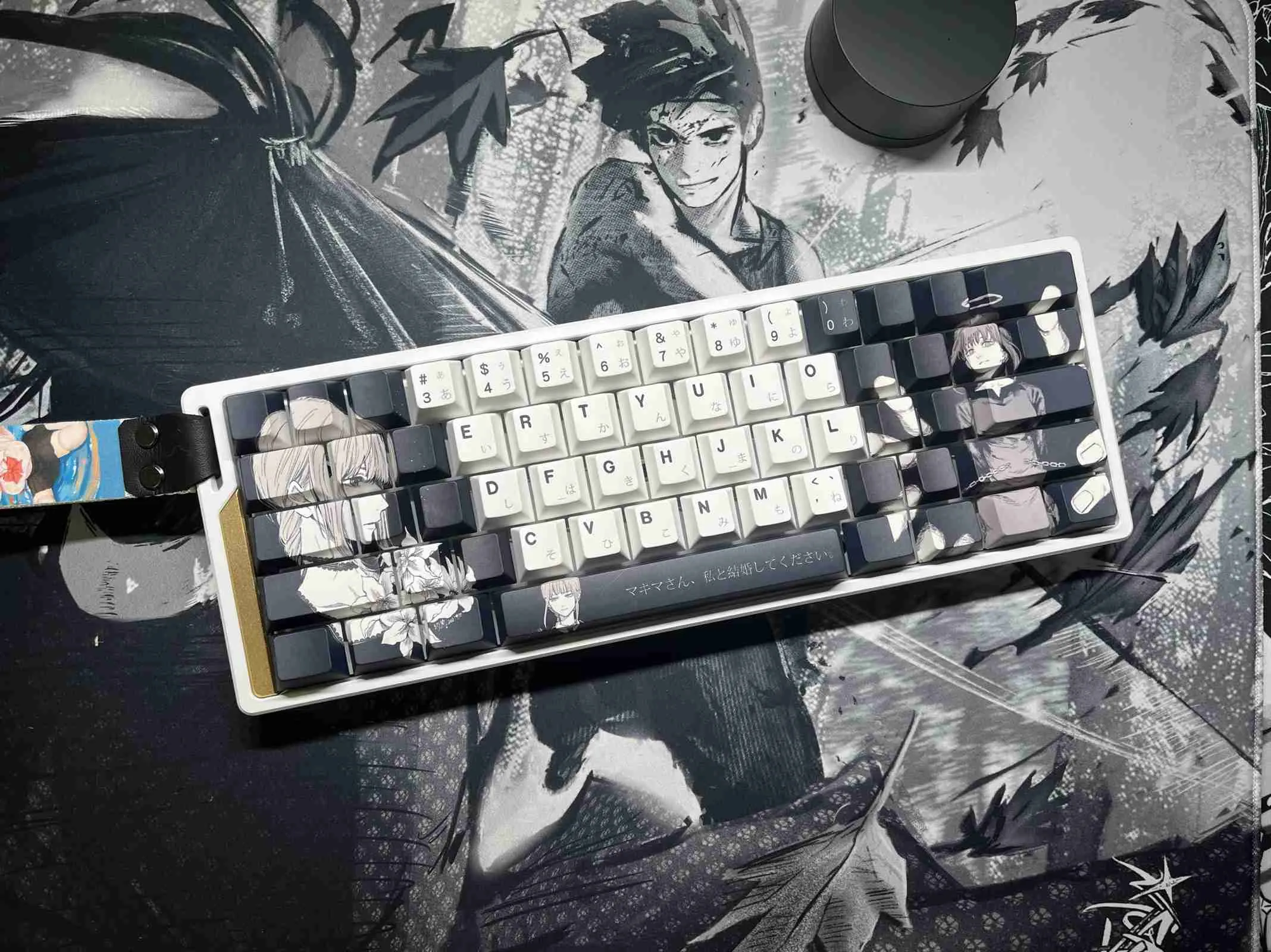Change your keyboard with the Chainsaw Man: Black Makima Cherry Keycap Set! This eye-catching set has sleek black keycaps and a white base for a stunning contrast. The black and white text gives your setup a contemporary feel and improves its appearance in general. Character icons add a distinctive flavor to the keycap layouts on the left and right. Which thanks to their careful design. To offer even more appeal with the left side features a sophisticated flower emblem. Comfort and longevity are guaranteed by the Cherry profile design. That crafted by sturdy PBT construction of this keycap set. Take your keyboard to the next level and celebrate Makima now!
