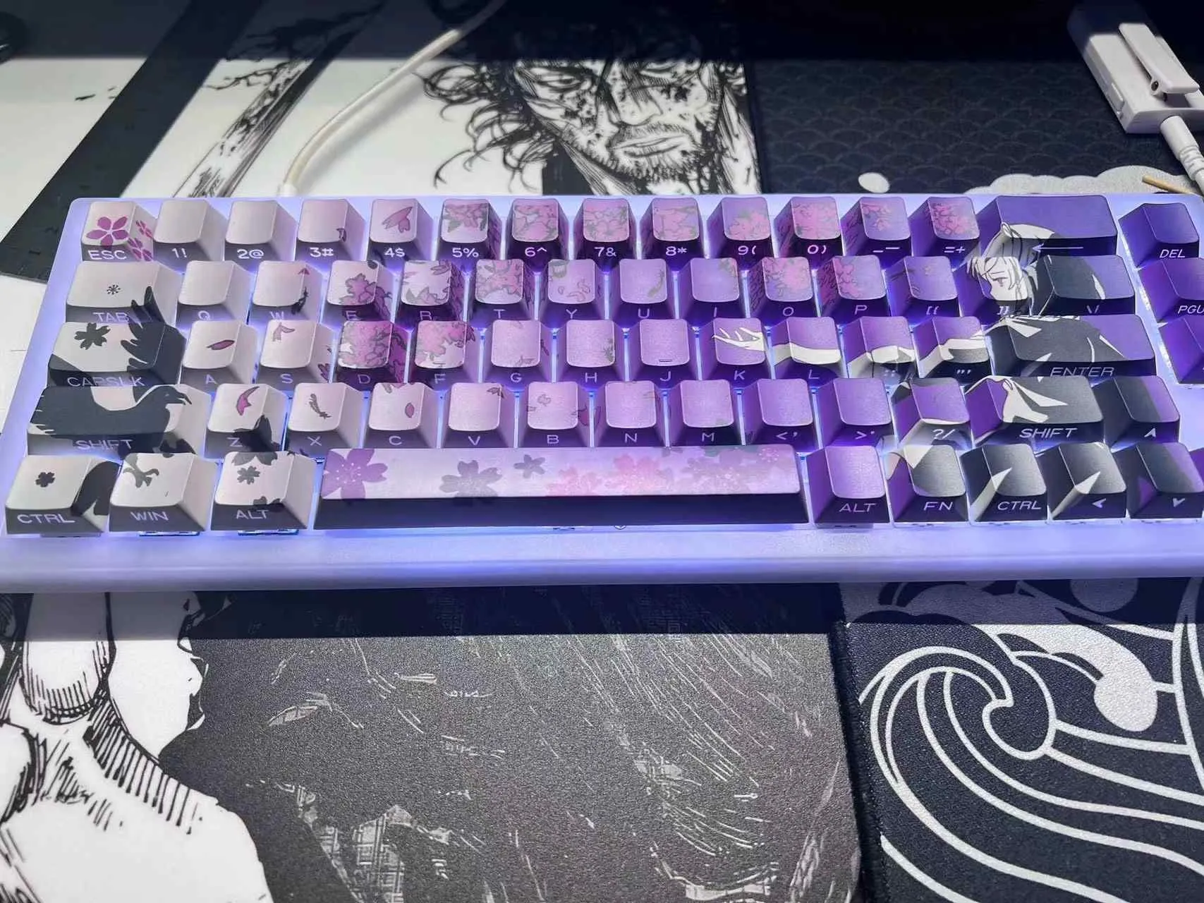 Enhance your mechanical keyboard with the Chainsaw Man: Makima Sakura Raven 2.0 OEM Keycap Set, which comes in attractive gradient pink, purple, and white colors. Â These keycaps, made of high PBT material, have a colorful left-to-right gradient that provides a distinct look to your setup. Â Perfect for aficionados, the distinctive design adds individuality to your keyboard while also providing longevity for gaming and typing. Â This beautiful keycap set enhances your workflow by combining beauty and utility to produce a true masterpiece.