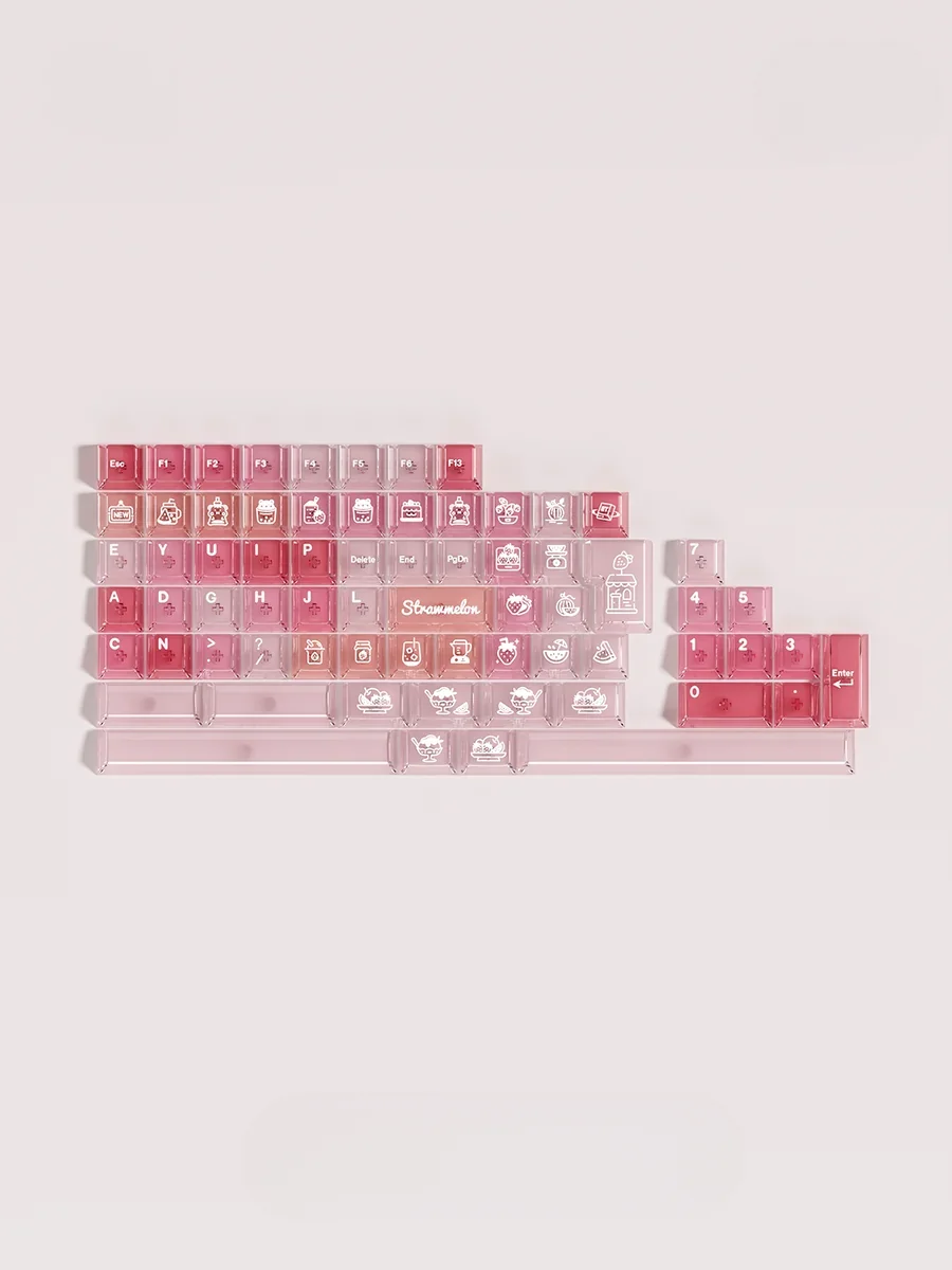 Indulge in the sweet essence of a delightful and appetizing keyboard experience with our Cheese Berry Cherry Keycap Set. This charming collection celebrates whimsy and sweet indulgence, turning your daily typing into a cheerful event. Elevate your setup with these cute custom keycaps, featuring an enchanting dessert keyboard theme. Each keycap is meticulously crafted with pastel, dessert-inspired illustrations of playful cheese, ripe strawberries, and juicy melons, bringing a unique visual feast to your fingertips. Made from durable PBT material, these keycaps promise longevity and resistance to shine, ensuring your aesthetic remains vibrant. The PBT dye-sub keycap set ensures that the delightful legends are permanently infused, preventing wear and fading. Perfect for those seeking whimsical keyboard accessories that spark joy and personalization, these strawberry melon cheese keycaps are an instant upgrade.