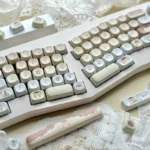 Enhanced your keyboard experience with the Chiikawa: Kuri Manju MOA Keycap Set! The charming combination of light brown and white keycaps in this series is ideal for bringing appeal to any arrangement. Each keycap adds a whimsical touch to your typing by showcasing the cute Kuri Manju emblem in a variety of amusing poses. The shift key has a cute Shisa next to the Kuri image, and the enter key shows Kuri contentedly eating a chestnut. Kuri is shown in a cute sleeping position on the caps lock key which gives it more personality. A must-have for lovers of the adored Chiikawa series that this keycap set is made of sturdy PBT material and is both aesthetically pleasing and long-lasting!