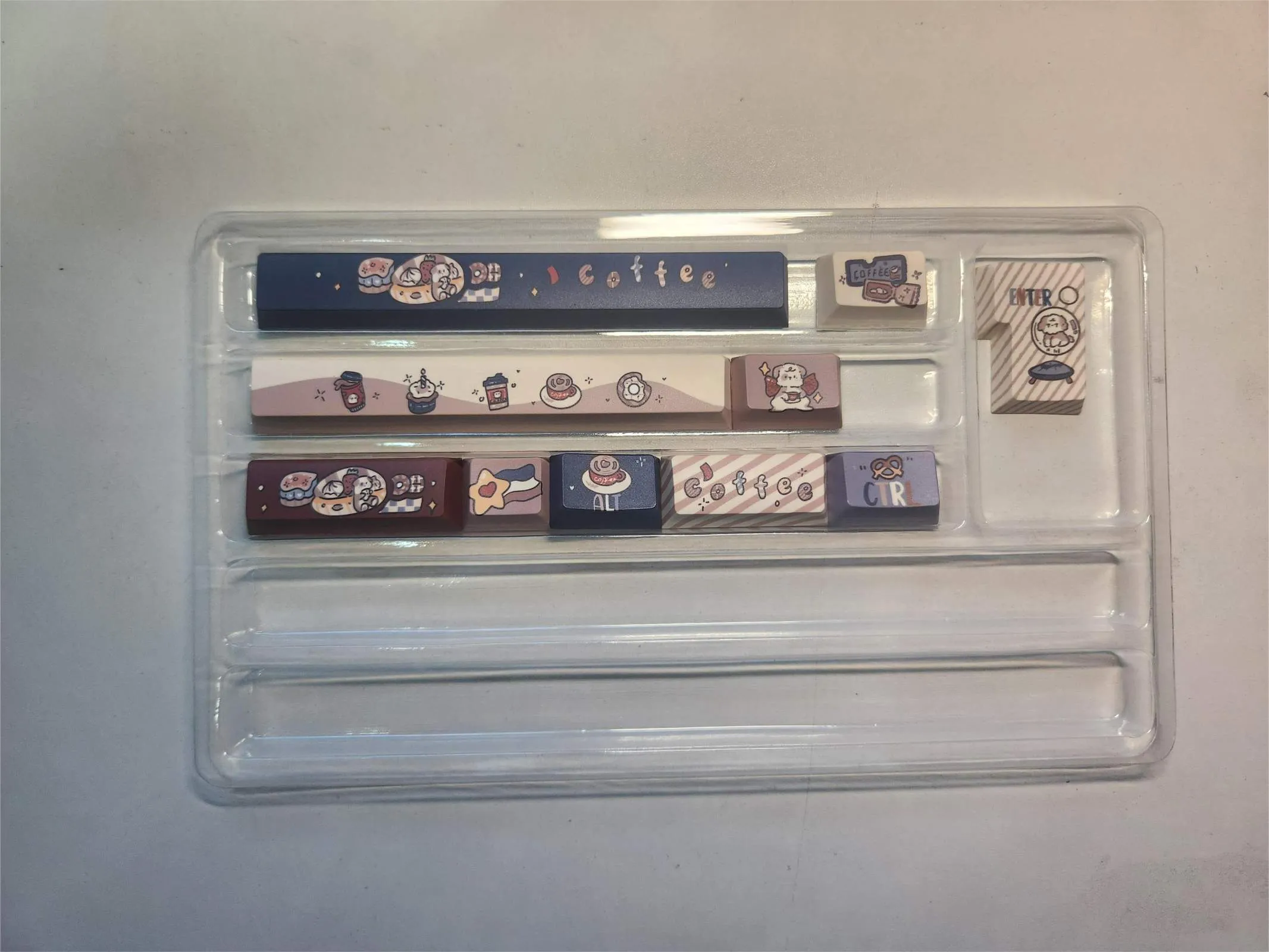 Indulge in the delightful Coffee Puppy Series Keycap Set! Four possibilities in two categories—Keycap Set and Supplement Keycap Set. That are available in this adorable collection. Depending on your typing style, each category offers the Cherry Profile or XOA Profile of your choosing. The keycaps provide coziness to your workstation with their lovely blend of beige, brown, purple and blue. Their visual attractiveness is enhanced by distinctive font styles in beige, brown and blue writing. While some keycaps have fashionable gridlines. Then others even have cute puppy icons on the Caps, Shift and Enter keys. This kit is ideal for dog lovers who want to upgrade their keyboards. Because it is made of sturdy PBT material!