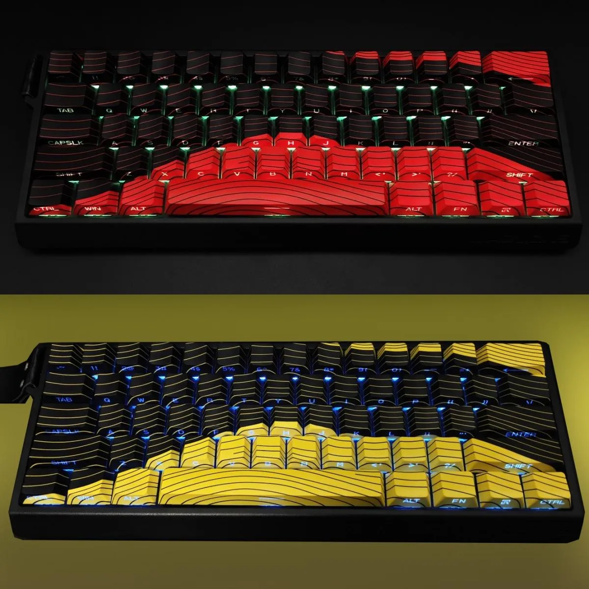 Red Black Keycap Set, Yellow Black Keycap Set