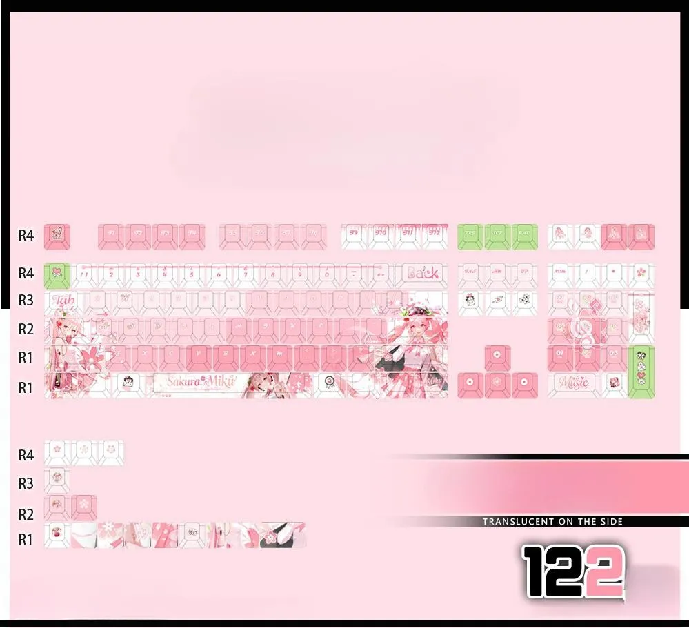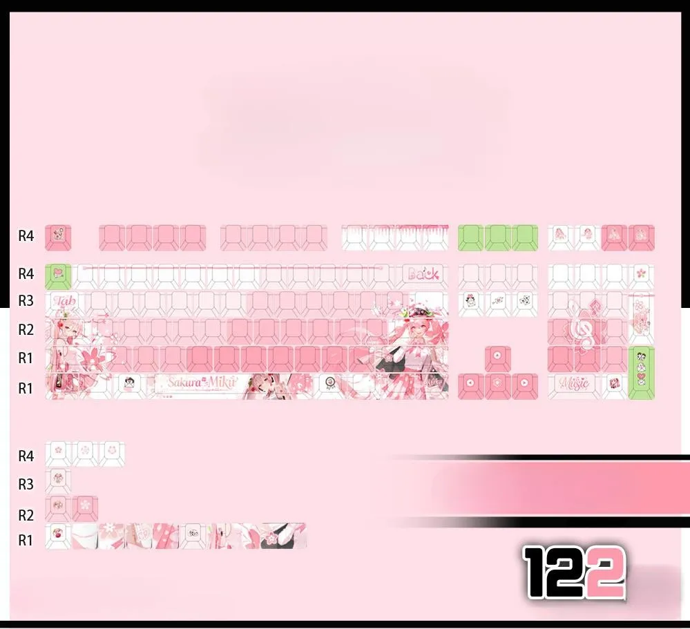 VOCALOID: Cute Sakura Hatsune Miku Cherry Keycap Set & Mechanical Keyboard