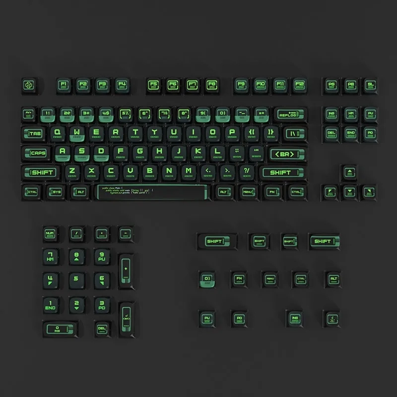 Enhance your gaming experience with the eye-catching Cyberpunk 2077: Binary Series ASA Keycap Set! Cyberpunk, White Green or Black Green are three striking alternatives that can improve the appearance of your keyboard. The space key displays elaborate images derived from the user interface that adding a unique touch and the set has a particular font style that embodies the spirit of the game. Additionally, a number of keycaps have fashionable frame designs that add to their allure. These keycaps are made of sturdy PBT/PC which guarantees longevity and a luxurious feel under your fingers. With this outstanding keycap set that skillfully combines style and usefulness which you may transform your typing experience and lose yourself in the colorful world of Cyberpunk 2077!