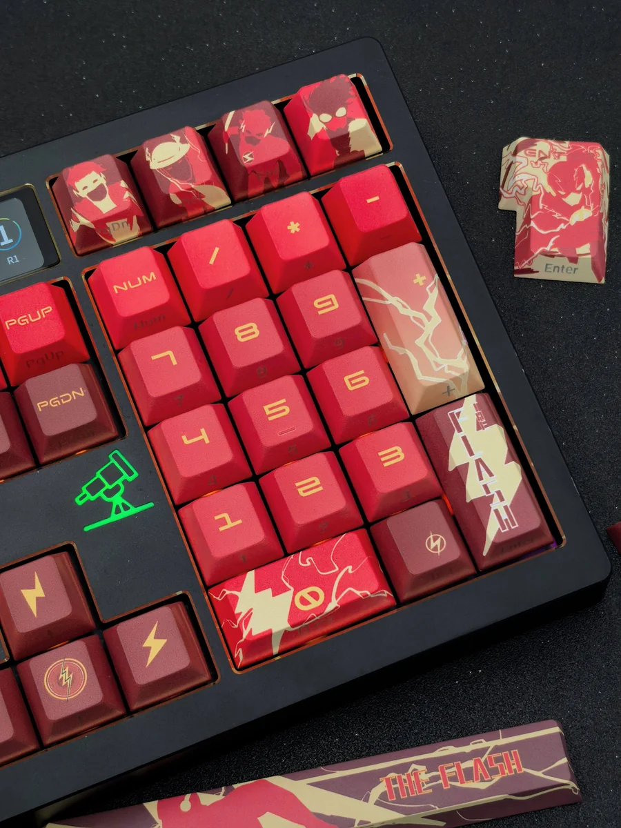 Ignite your desktop with the electrifying energy of the fastest man alive. Our exclusive DC Flash keycap set transforms your mechanical keyboard into a tribute to heroism and unparalleled speed. This premium artisan keycap features the iconic Flash insignia and dynamic lightning motifs, meticulously side-engraved in vibrant red to capture the essence of the Scarlet Speedster. It is more than just a keycap; it is a statement piece for your gaming setup, a unique addition to your personalized desk, and a prized collectible for any DC Comics fan. Feel the excitement every time your fingers touch this superhero keycap, designed for both aesthetic brilliance and durable performance. Elevate your everyday typing or intense gaming sessions with a touch of the Speed Force. This Flash keycap is the ultimate accessory for those who demand both style and substance.