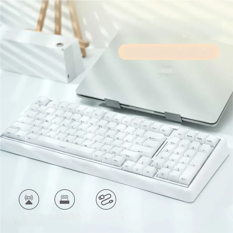 Elevate your setup with the Double-Skin Milk Base99 Tri-Mode Mechanical Keyboard. That blends creamy aesthetics with high performance. To suit your typing style, pick one of three high-end switches: Belle, Ocean Heart or Stellar. The sturdy PBT material used to make its pristine. Which all-white keycaps ensures long-lasting texture and shine resistance. While maintaining the top’s immaculate appearance. That subtle grey side-printed legends offer a contemporary and minimalist touch. The Base99 offers a smooth wireless typing experience that is ideal for both work and play. Should thanks to its stylish and functional design. Savor a stylish and fulfilling keyboard that goes well with any desktop.