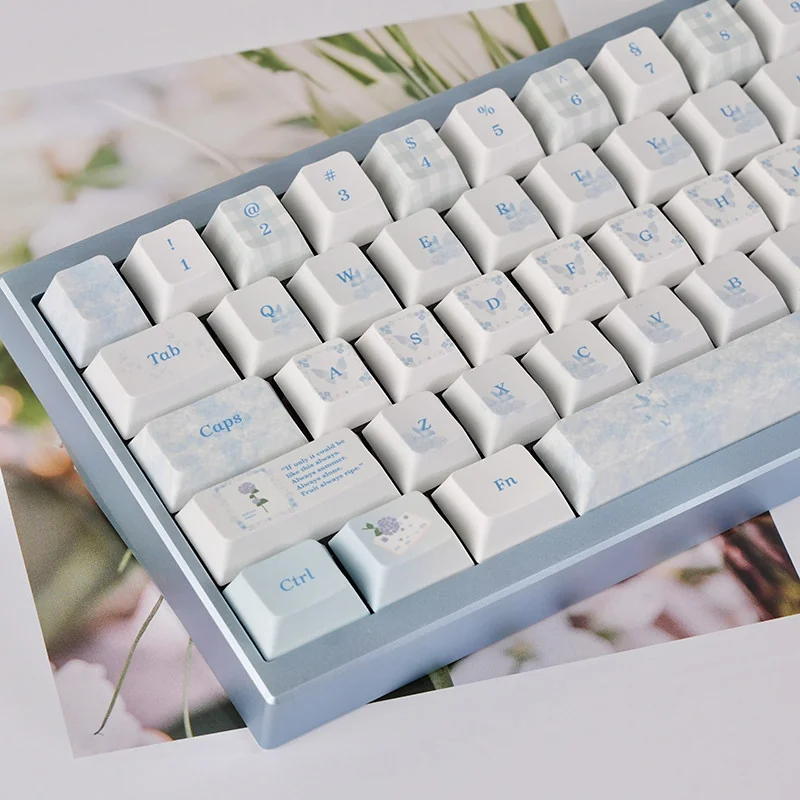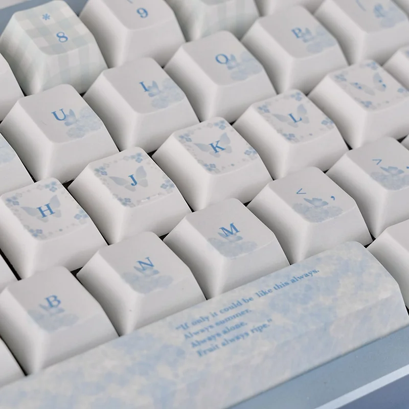 Immerse your workspace in a realm of ethereal beauty with our Iconic Dream Butterfly Cherry Keycap Set. This exquisite PBT Keycap Set captures the serene dance of butterflies, rendered in a delicate blue and white palette that evokes dreamlike tranquility. Each keycap is a testament to artistic elegance, featuring a meticulously applied dye-sublimated design. Crafted from premium, durable PBT material, these keycaps offer a superior tactile experience and exceptional longevity. Which ensuring your keyboard remains a centerpiece of sophisticated design for years to come. The Cherry Profile Keycaps provide a comfortable and familiar typing feel, perfect for both avid typists and casual users. Transform your mechanical keyboard into a personal statement of style and grace, reflecting a passion for unique, high-quality accessories. Discover the perfect blend of performance and poetic aesthetics.