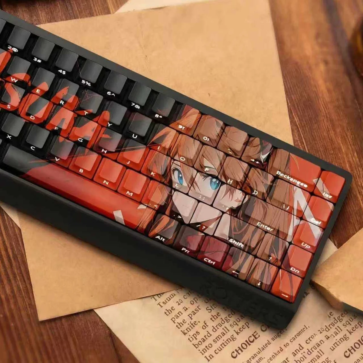 Embrace your inner pilot and dive into the thrilling world of Evangelion with these vibrant EVA Asuka keycaps. This meticulously crafted anime keycap set brings the iconic character’s spirit to your fingertips, blending passion with custom keyboard artistry. Each keycap boasts an iconic EVA Asuka theme, rendered with vivid red and orange hues that capture her dynamic energy. Crafted from durable PBT, these custom PBT keycaps offer superior resistance to shine and wear, ensuring your setup remains pristine. The unique side-lit design allows your keyboard’s backlighting to brilliantly illuminate the legends, creating a truly immersive glow for gaming or display. Utilizing advanced dye-sublimated keycaps technology, the legends are permanently fused into the PBT, guaranteeing crisp, long-lasting detail. Perfect for collectors, gamers, or anyone looking to personalize their setup, these side-lit keycaps offer an unparalleled blend of nostalgia and excitement. Elevate your keyboard with this artistic masterpiece.