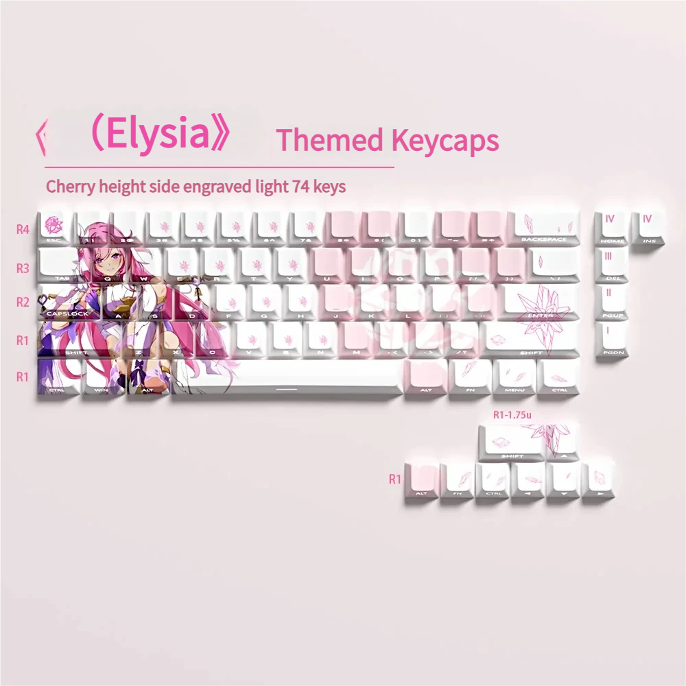 Unleash the elegance of Elysia on your desktop with this exquisite set of Honkai Impact 3rd: Iconic Elysia Cherry Keycap Set. Designed for devoted Honkai Impact 3rd fans, these luminous side-printed PBT keycaps transform your mechanical keyboard into a canvas of character-rich artistry. Experience the magic of Elysia’s signature pink and white palette, beautifully rendered with intricate anime art that shines through each legend. These PBT Shine-Through Keycaps offer exceptional durability and a premium feel, ensuring your keyboard not only looks stunning but performs flawlessly during intense gaming sessions or daily use. Perfect for collectors and enthusiasts, these Anime Gaming Keycaps elevate your setup with a unique aesthetic that truly expresses your adoration for the game. The side-lit legends provide a captivating glow, making your keyboard a focal point whether you are battling foes or simply admiring your personalized creation.