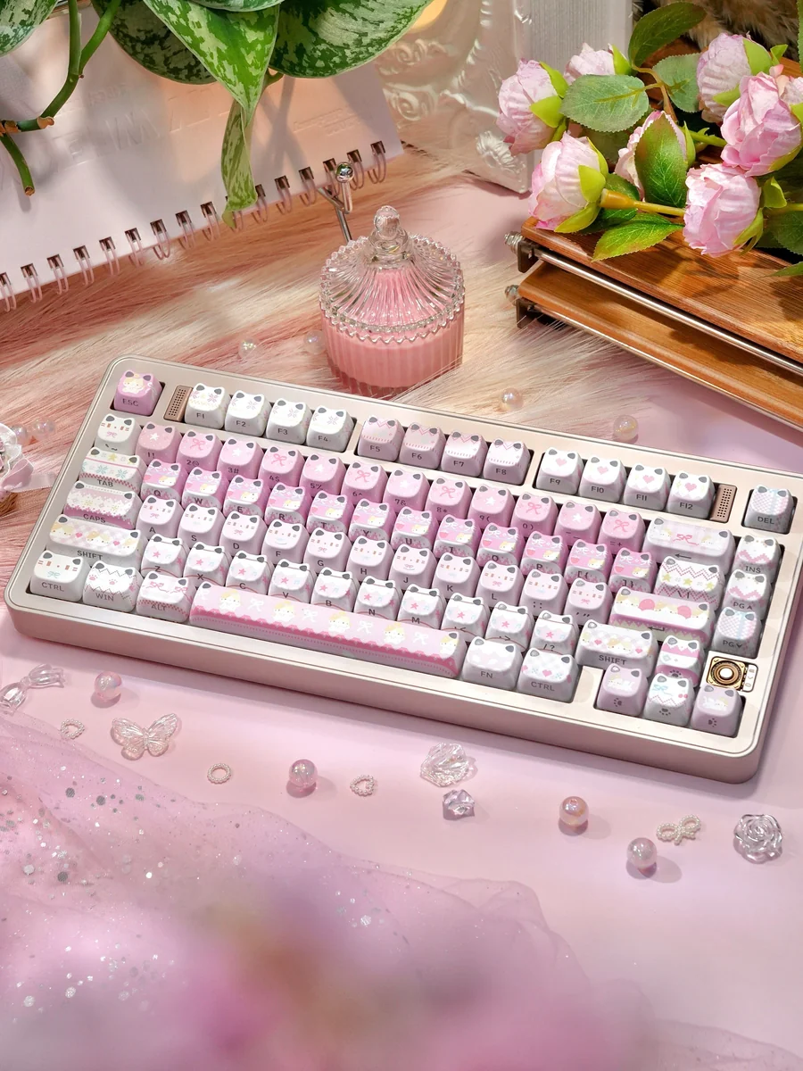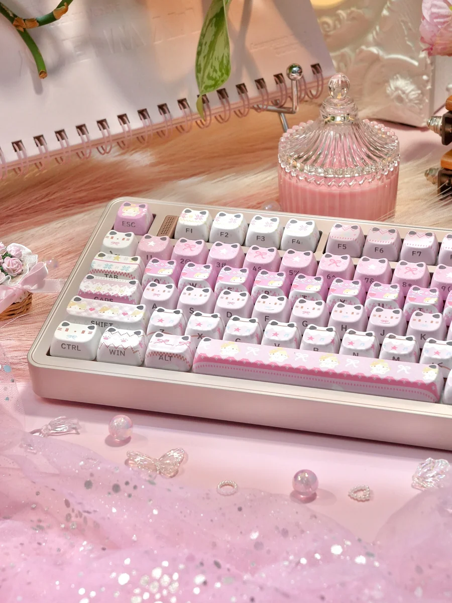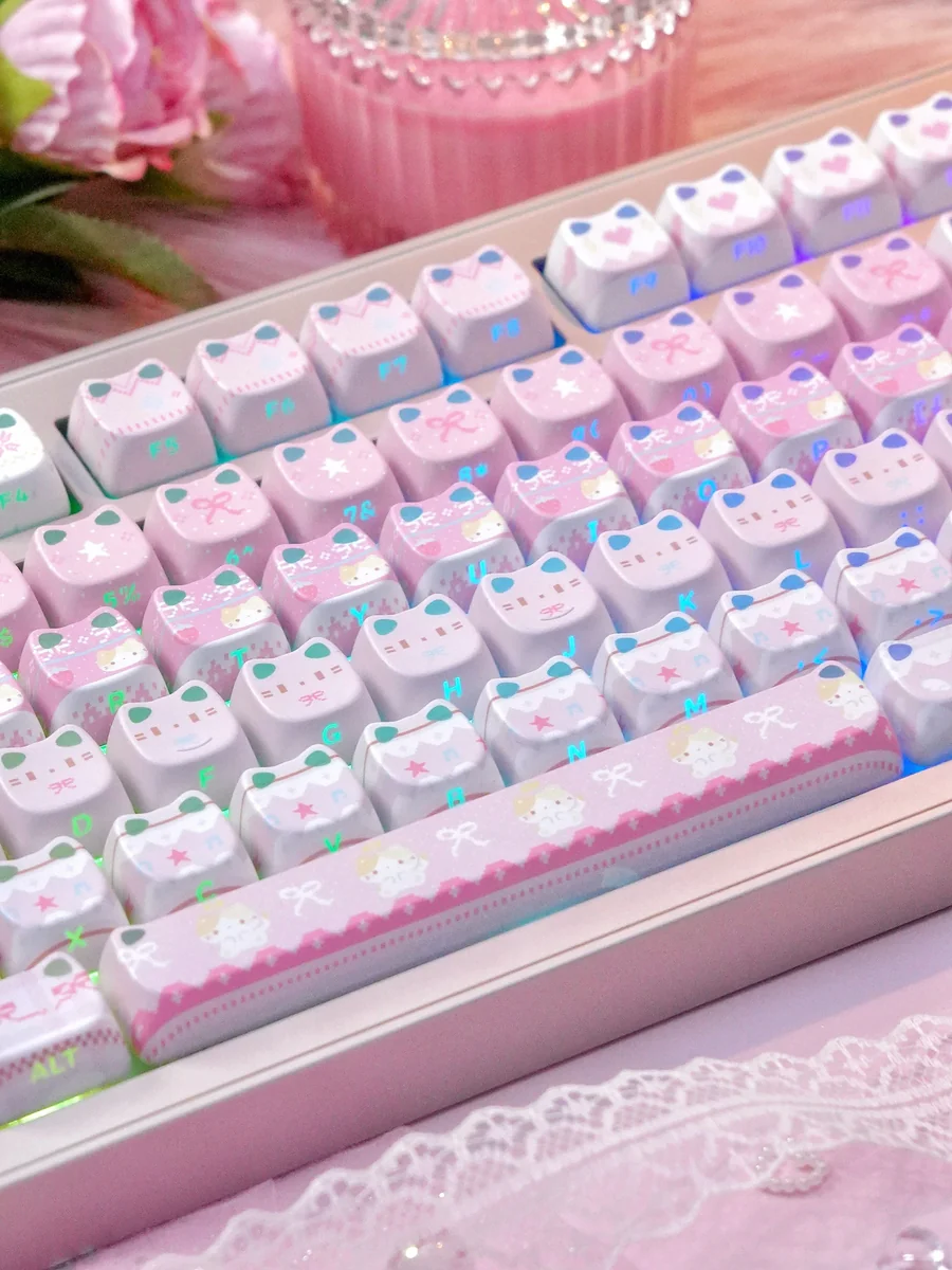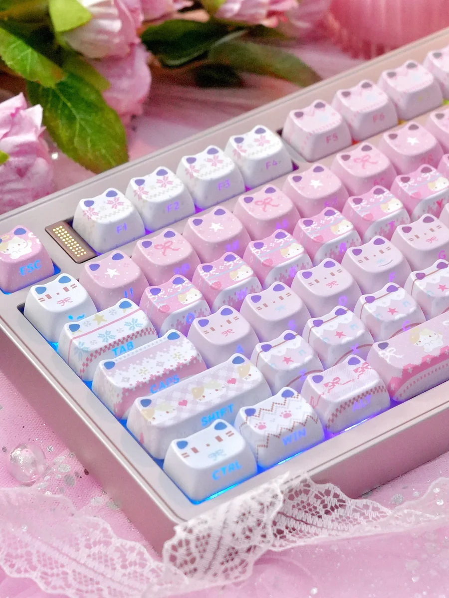 Transform your typing experience into an artistic delight with our MAO Side-Engraved Fair Isle Keycaps. Each cap is a miniature canvas, featuring intricate Fair Isle patterns beautifully intertwined with charming cat motifs, designed to bring a cozy and unique setup to your desk. Crafted using advanced dye-sublimation keycaps technology, the vibrant colors and detailed designs are permanently fused into the PBT material, ensuring exceptional durability and resistance to fading. The innovative side-engraved legends offer a clean, minimalist look from the top while providing clear visibility from an ergonomic angle. This premium custom keycap set is perfect for enthusiasts seeking a touch of whimsical feline elegance and a truly personalized keyboard aesthetic. Immerse yourself in the enchanting world of these cat themed keycaps and let your creativity flow.
