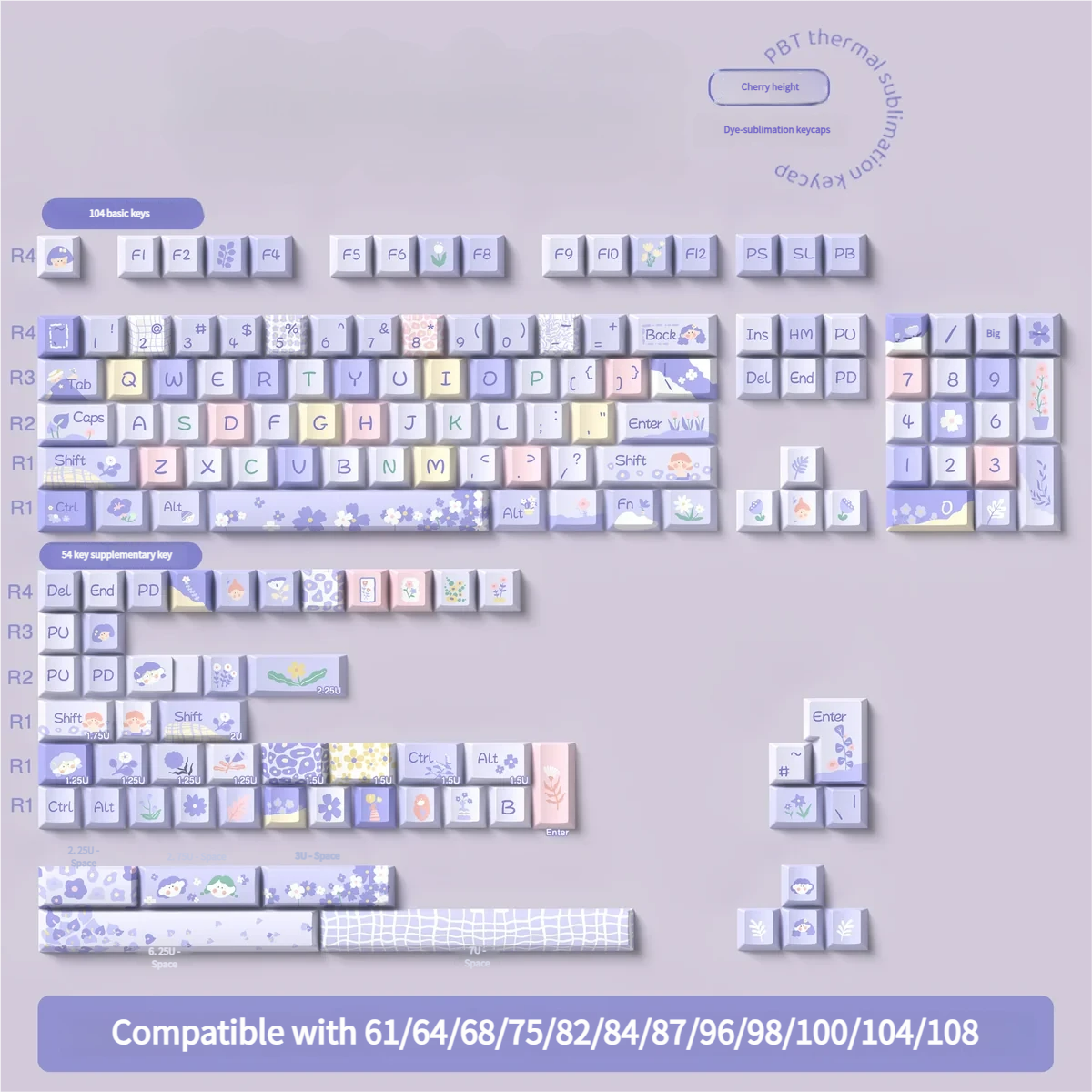 Embrace nature’s delicate beauty and personal expression with our Floral Girl Series Keycap Set. Designed to transform your keyboard into a serene, whimsical garden, this set brings a touch of vibrant floral art to your desk. Each keycap is crafted from durable PBT material, ensuring longevity and a premium feel. Utilizing advanced dye-sublimation, the intricate patterns and vibrant pastels are permanently fused, guaranteeing designs that won’t fade or wear. Elevate your custom keyboard aesthetic with this unique nature theme keycap set, perfect for creative minds, office professionals, or anyone seeking aesthetic personalization. Experience elegance and creativity with every keystroke, making your setup truly bloom.
