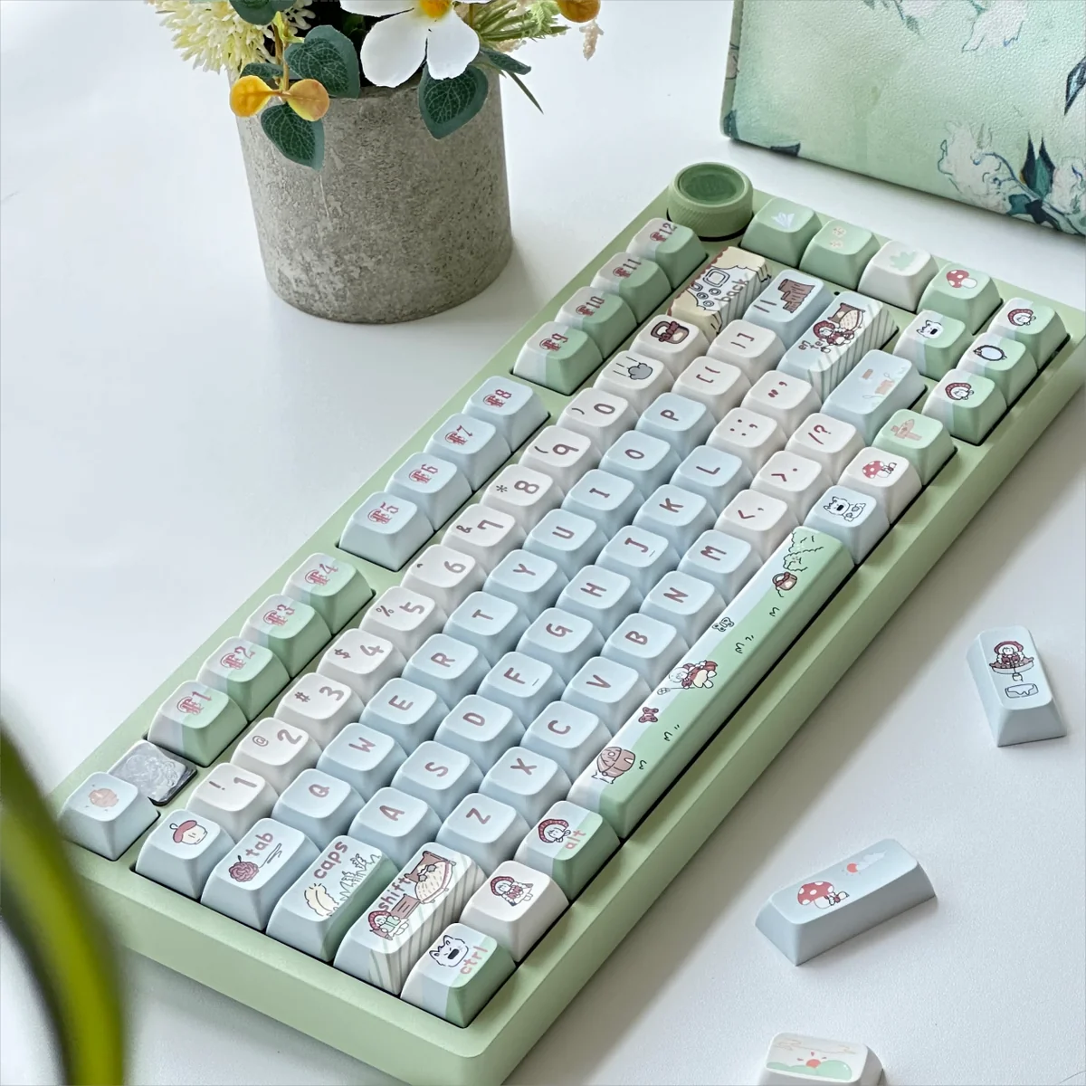 Step into a world of serene beauty with our enchanting Spring Forest Series Keycap Set. Designed to capture the whimsical charm and natural tranquility of a lush spring forest, this exquisite PBT keycap set transforms your mechanical keyboard into a captivating work of art. Each keycap features intricate, nature themed designs, bringing the delicate flora and peaceful ambiance of a woodland escape right to your fingertips. Crafted from high-quality, durable PBT material, these custom mechanical keycaps promise exceptional longevity and a satisfying tactile feel. The ergonomic profile ensures comfortable typing sessions, enhancing both your productivity and creative flow. Immerse yourself in the enchantment of nature every time you type, making your desk a haven of inspiration. Elevate your setup with these unique Forest Keycaps and let the spirit of the forest inspire your every keystroke.