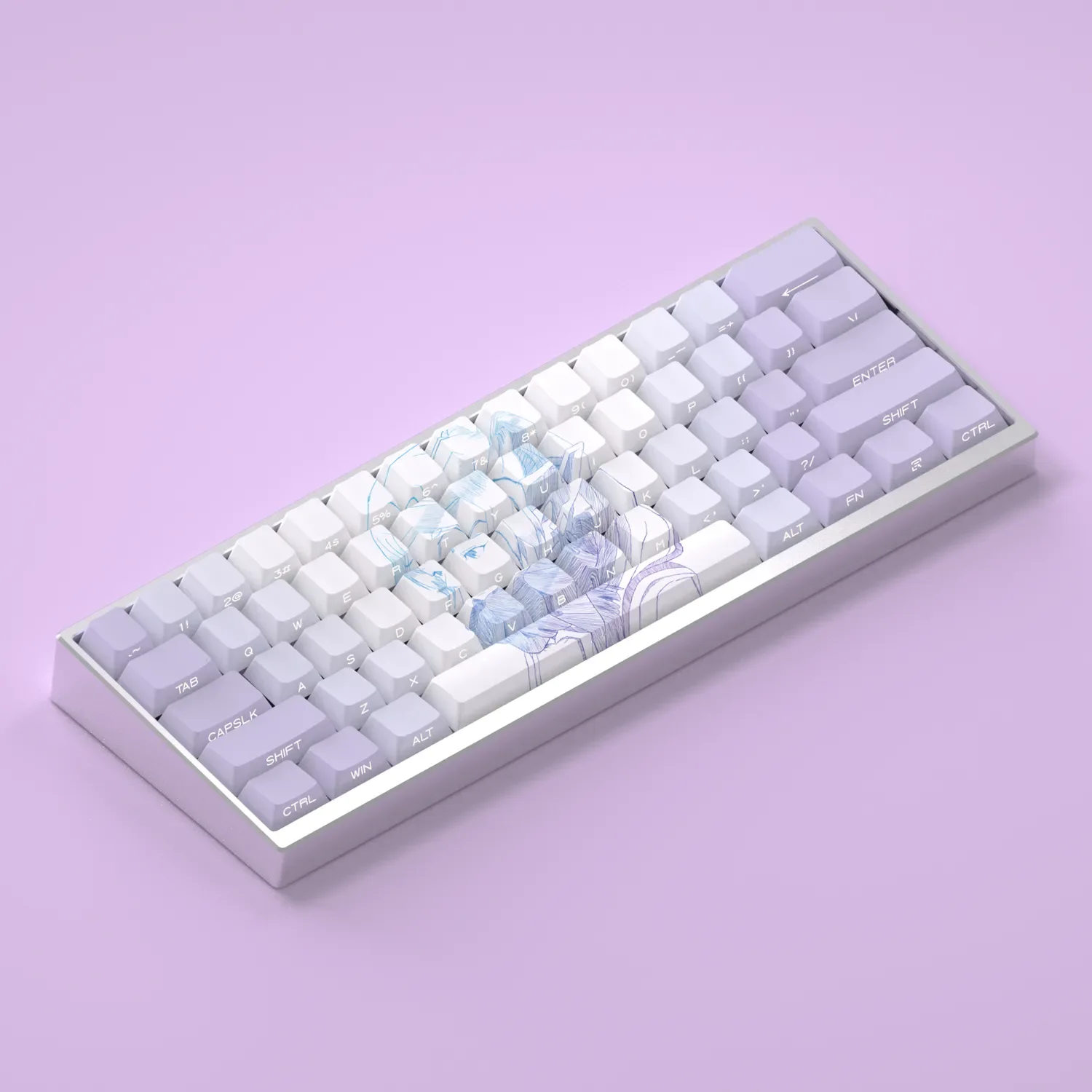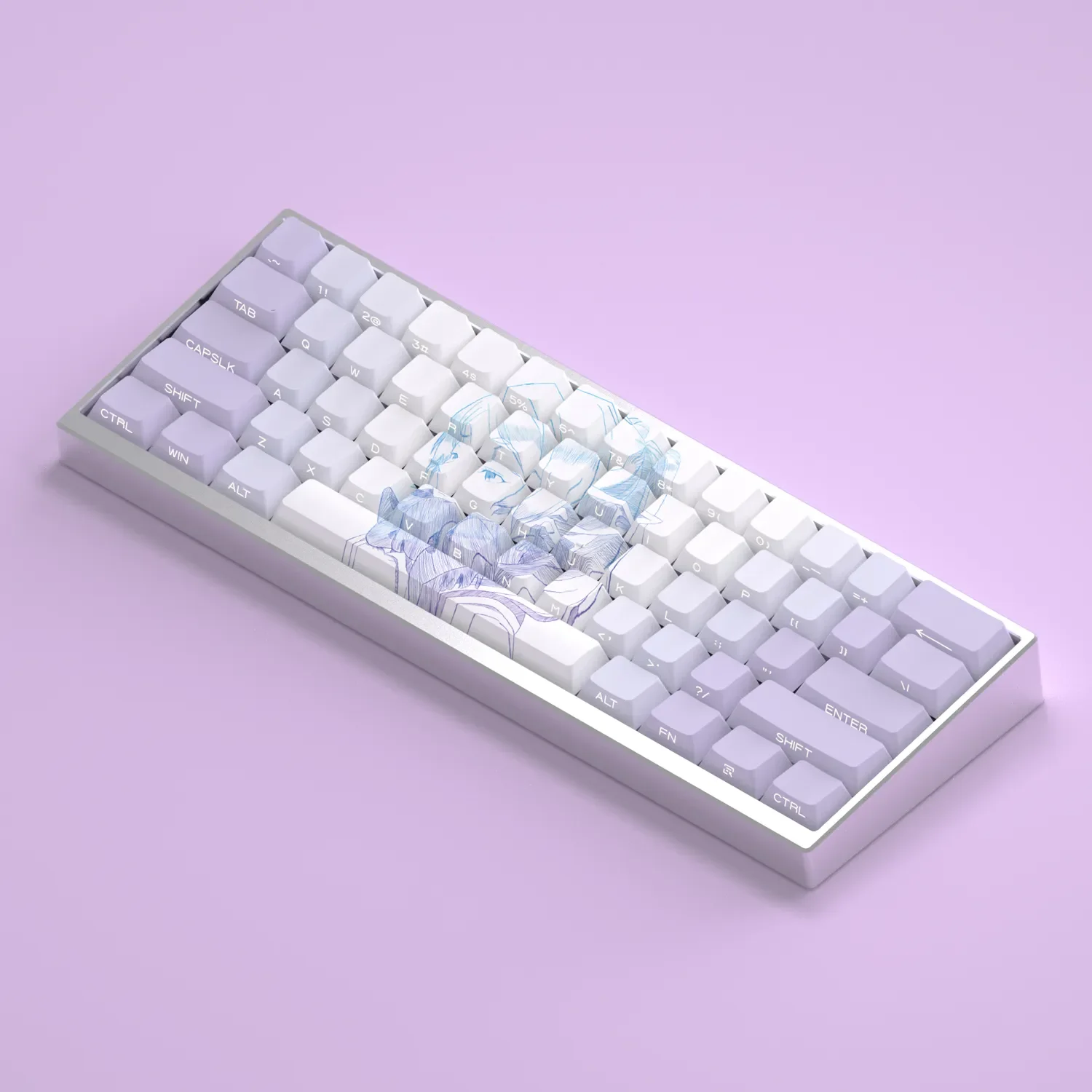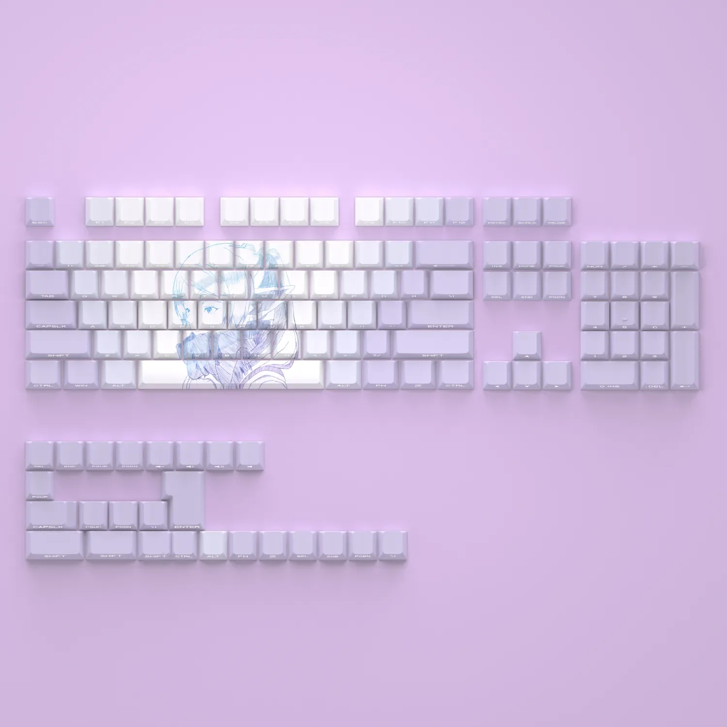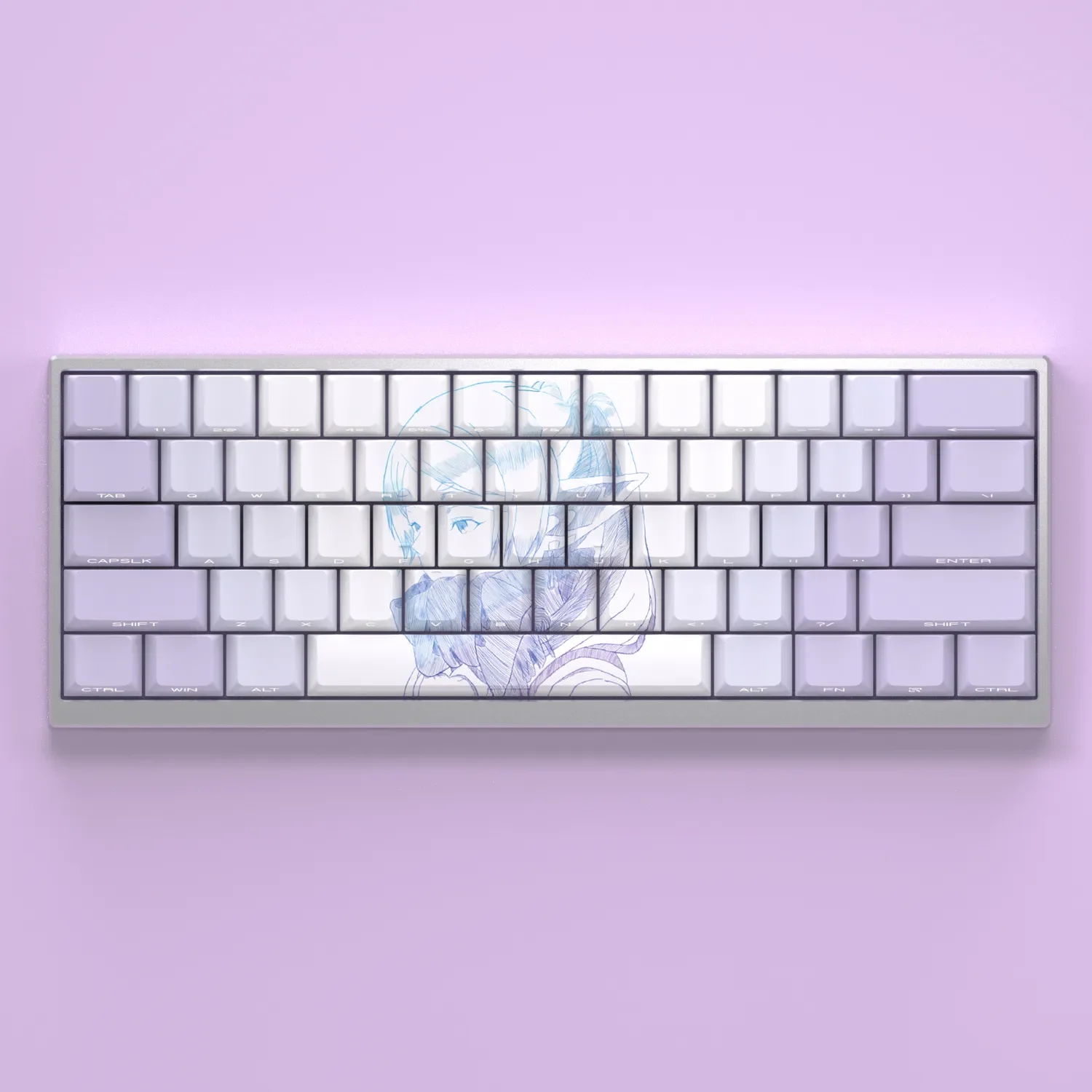 Step into the enchanting world of Frierens journey with this meticulously crafted Frieren: Beyond Journey’s End: Stylish Frieren Cherry Keycap Set. Designed for fans who cherish both anime aesthetics and peak keyboard performance, these unique anime keycaps bring a touch of serene magic to your desk. Each cap boasts luminous side-printed legends, casting a subtle glow that enhances your typing experience and provides clear visibility without distracting top-prints. Its a thoughtful nod to the epic tale, blending subtle character motifs with functional elegance.  This full 130-key Cherry profile set ensures broad compatibility, transforming your 60, 68, or 87-key keyboard into a canvas of nostalgic artistry. Immerse yourself in the story, elevate your setup with these distinct side-lit keycaps, and make every keystroke a journey.
