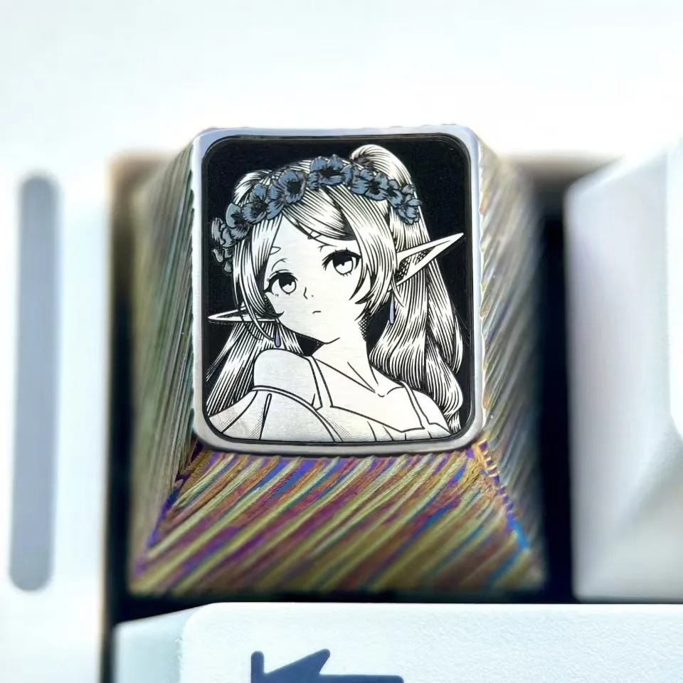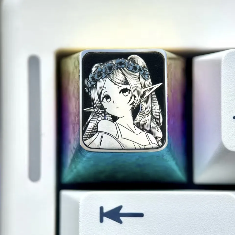 Revamp your keyboard with the gorgeous Frieren: Beyond Journey’s End: Frieren Side View Keycaps! Silver, Blue, Colorful and Meteor Ice Crystal are the four alluring options available in this stunning collection. With a pretty flower hair accessory that adds a touch of elegance. That each keycap has a lovely character icon design. The vivid hues are accentuated by the dramatic black background. Which makes each keycap genuinely unique. These keycaps long lasting quality and resilience are guaranteed by their sturdy titanium construction. Fans of Frieren will love the eye-catching impact created by the distinctive 3D design. You can show off your passion for the series and customize your setup with this keycap set!