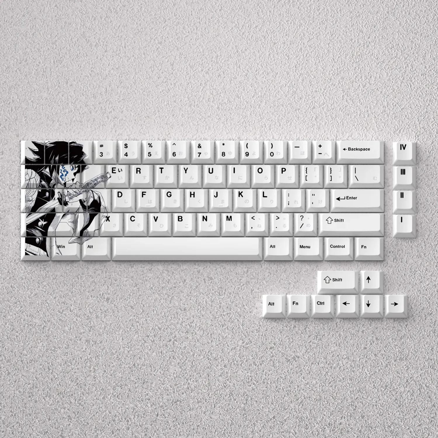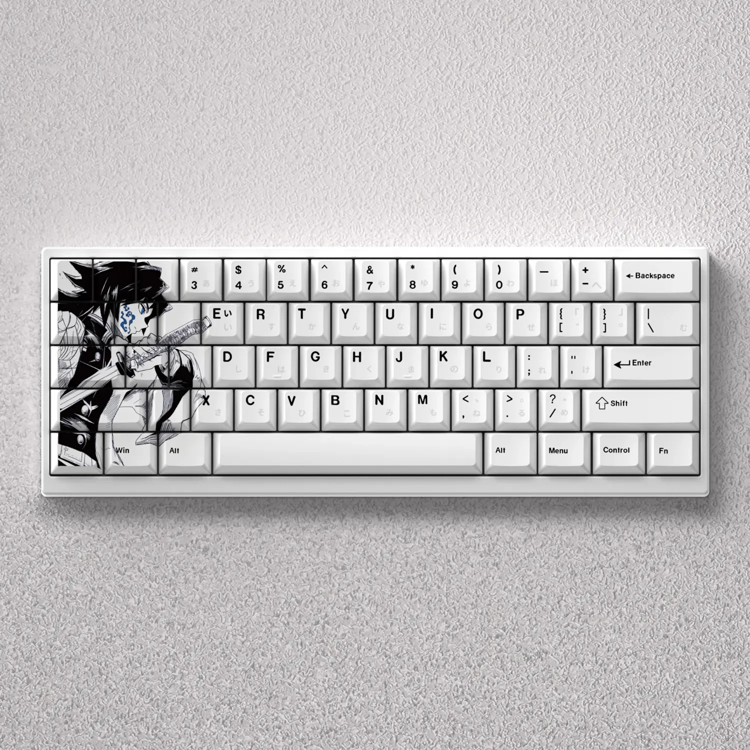 Immerse your mechanical keyboard in the world of Demon Slayer with this exquisite Giyu Tomioka Cherry Keycap Set. Meticulously crafted for fans, this custom keycap embodies the stoic resolve of the Water Hashira, Giyu Tomioka. Featuring crisp, front-engraved legends that stand out without backlight bleed, it offers a premium, tactile experience. Designed for a seamless fit, this high-quality resin keycap is compatible with 60%, 65%, and 68% mechanical keyboards, instantly elevating your setups aesthetics and personalizing your typing or gaming experience. A must-have for any Demon Slayer enthusiast seeking to infuse their workstation with unique character and superior craftsmanship. Transform your keyboard into a testament to your fandom.