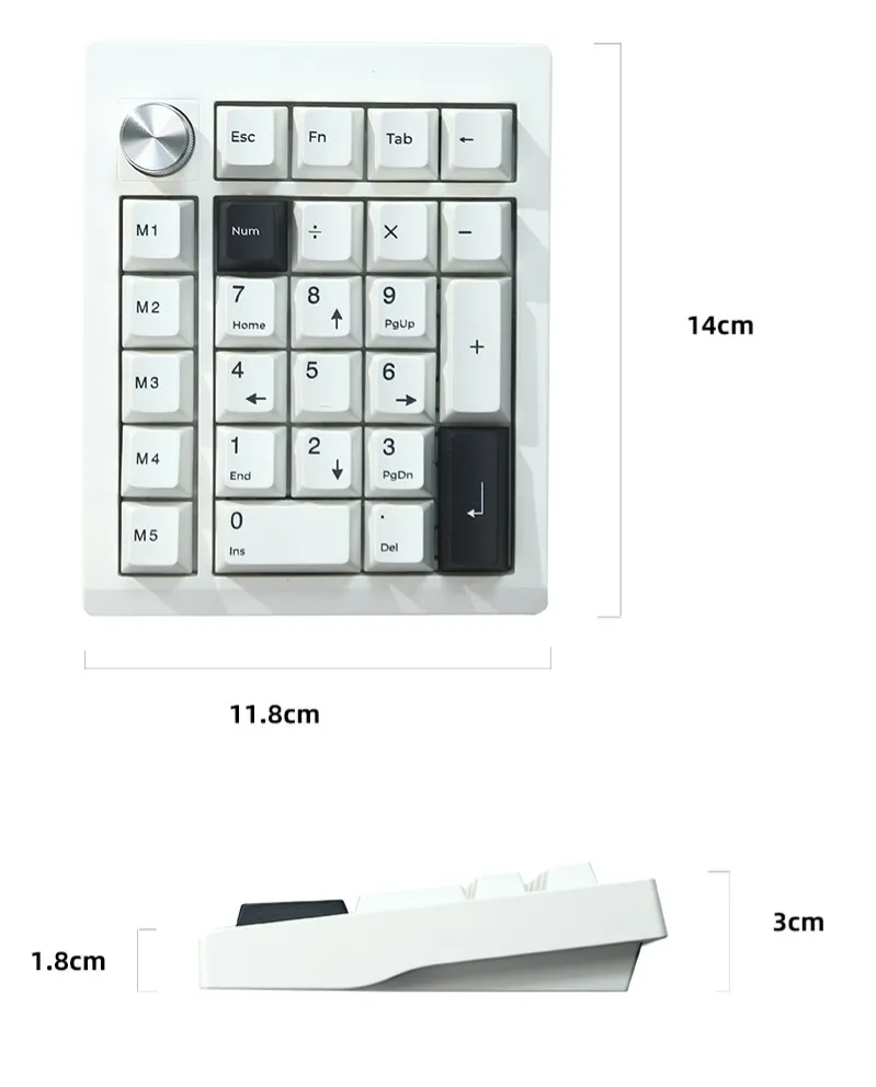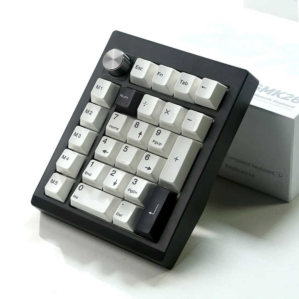 Utilize the GMK26 Number Pad Tri-Mode Mechanical Keyboard to improve your typing! You can pick between a dramatic black mechanical keyboard or a sleek white. That both of which are gorgeous options. Any arrangement is improved by the dramatic contrast provided by the combination of black and white keycaps. For a unified appearance that each key has clear lettering in complementary colors. A convenient knob feature increases adaptability for smooth adjustments. These keycaps are made of sturdy PBT which guarantees longevity and a high end feel. The GMK26 is a must-have accessory for all keyboard aficionados. Since it offers the ideal balance of elegance and functionality whether you’re working or gaming!