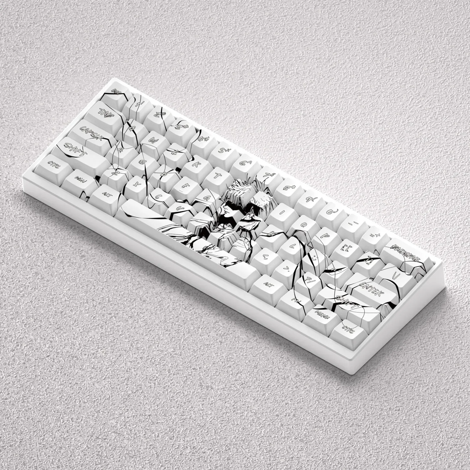 Unleash the limitless power and cool elegance of Gojo Satoru onto your desktop with this exclusive Jujutsu Kaisen: Satoru Gojo Anime Cherry Keycap Set. Designed for the ultimate anime fan, these Gojo Satoru Keycaps are more than just an upgrade. But they’re a statement of your passion and personalization. Each durable PBT Cherry keycap features crisp, vibrant legends inspired by the iconic Jujutsu Kaisen anime, offering a premium tactile experience that stands the test of time and countless keystrokes. This meticulously crafted Anime Keycaps Set transforms your standard board into a visually stunning masterpiece. Feel the fandom pride with every tap, whether youre dominating in games, coding, or simply expressing your unique style. Perfectly compatible with most 60 Percent, 65 Percent, and 68 Percent mechanical keyboard layouts, this set ensures a seamless fit and an immediate aesthetic boost. Elevate your setup, express your excitement, and bring Gojos power to your fingertips today!