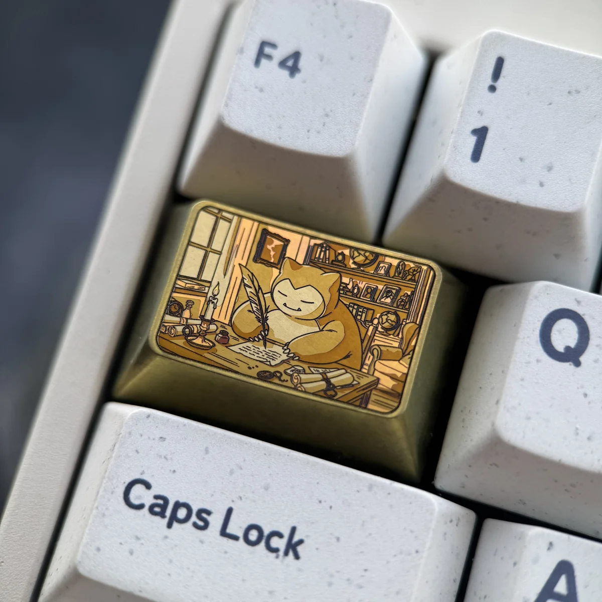 Unleash a wave of nostalgia with our Pokemon: Golden Snorlax Tab Key Keycap, a true masterpiece for your mechanical keyboard. This premium Pokemon keycap is meticulously crafted from aerospace-grade titanium. That offering unparalleled durability and a lustrous golden finish that captures Snorlax’s iconic charm. Each custom keycap is designed with a precise Cherry profile keycap height, ensuring seamless integration and a comfortable typing experience. Beyond its functional appeal, this Snorlax Titanium Keycap serves as a collectible art piece. The precision engineering and attention to detail elevate this piece beyond a simple accessory, making it a focal point for any enthusiast’s setup. Perfect for collectors and fans seeking a unique blend of gaming nostalgia and premium materials. Which it’s a daily reminder of cherished memories and superior craftsmanship.