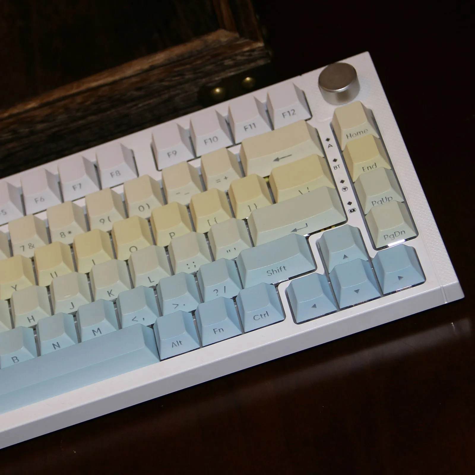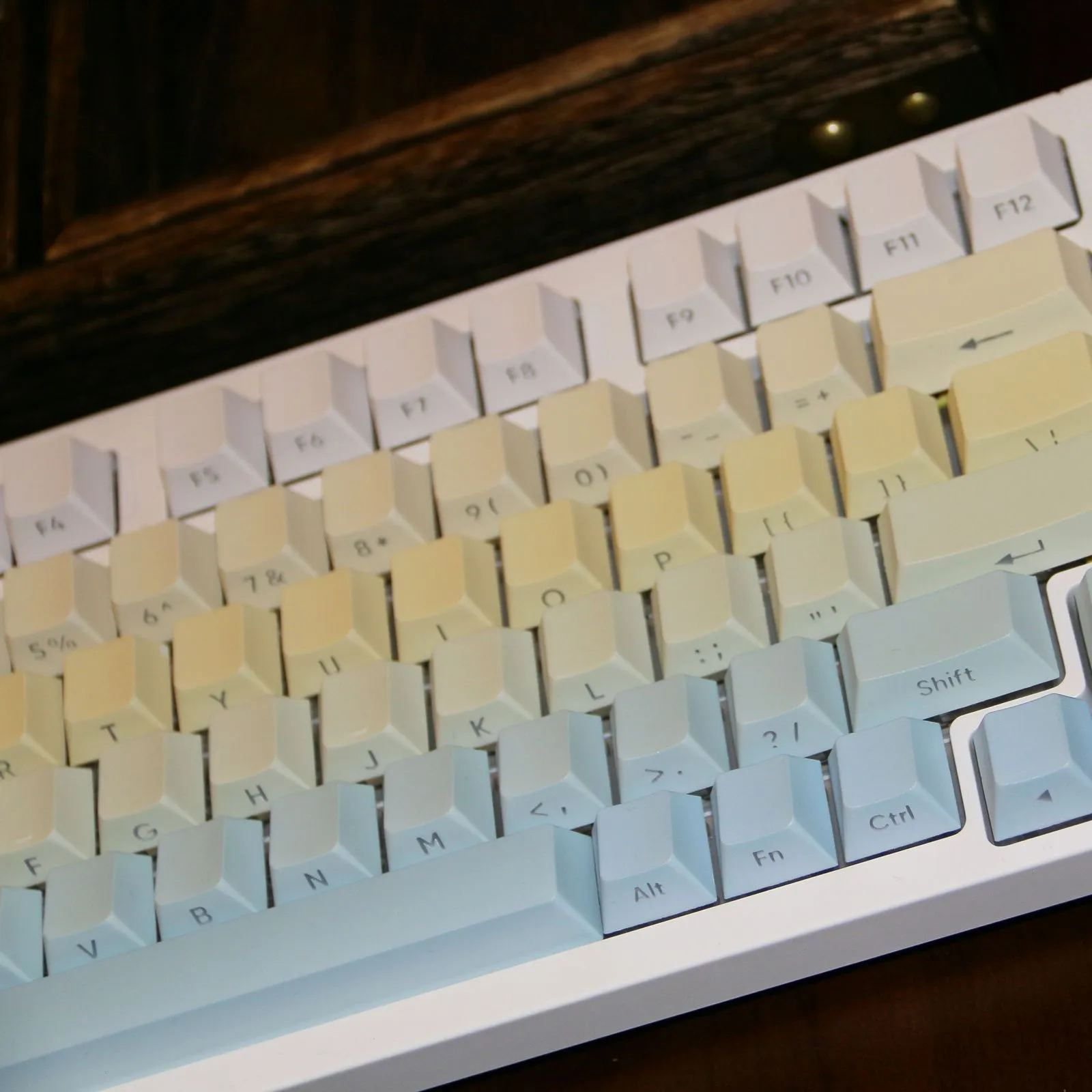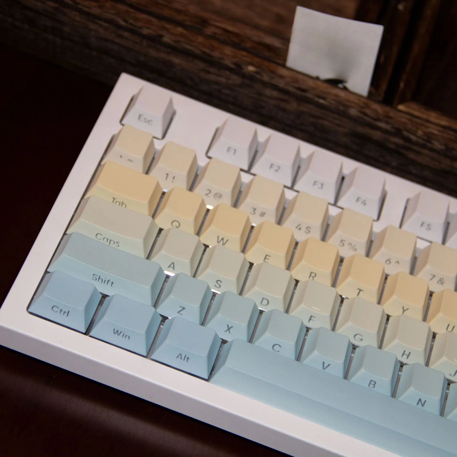 Brighten up your keyboard with the Gradient Lemonade OEM Keycap Set! This charming collection of white, yellow, green and blue keycaps comes in two varieties. Which including Keycap collection With Front Lettering and Keycap Set With Side Lettering. Every keycap features an exquisite gradient pattern that gives your setup a welcome pop of color. These keycaps crafted by sturdy PBT material which guarantees longevity and a high end feel. You may personalize your keyboard to properly suit your style. Which thanks to the distinctive lettering possibilities. This colorful and upbeat keycap set will revolutionize your typing experience. That is ideal for bringing some excitement into your office.
