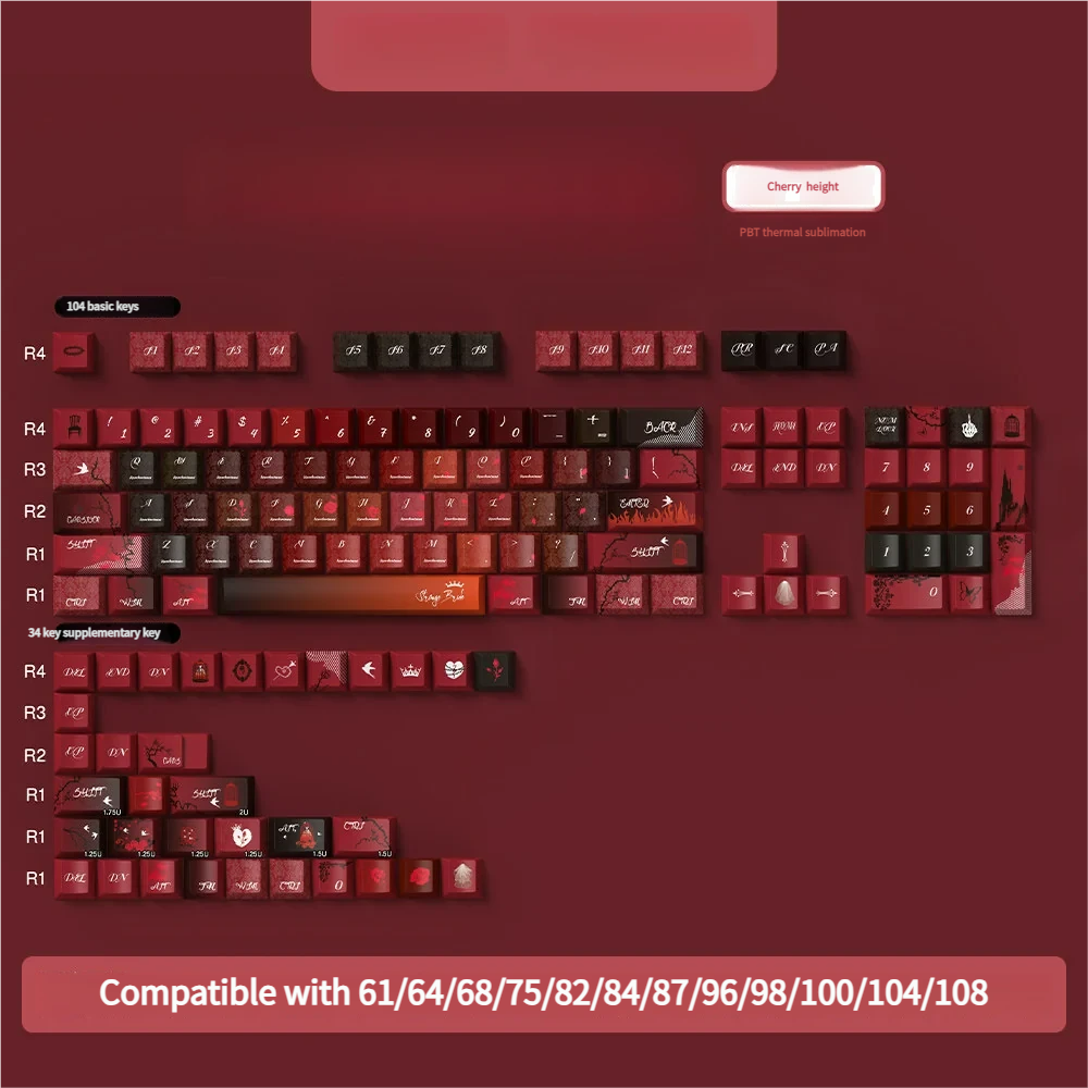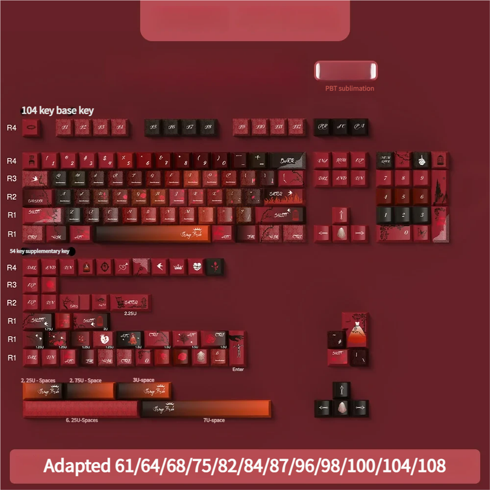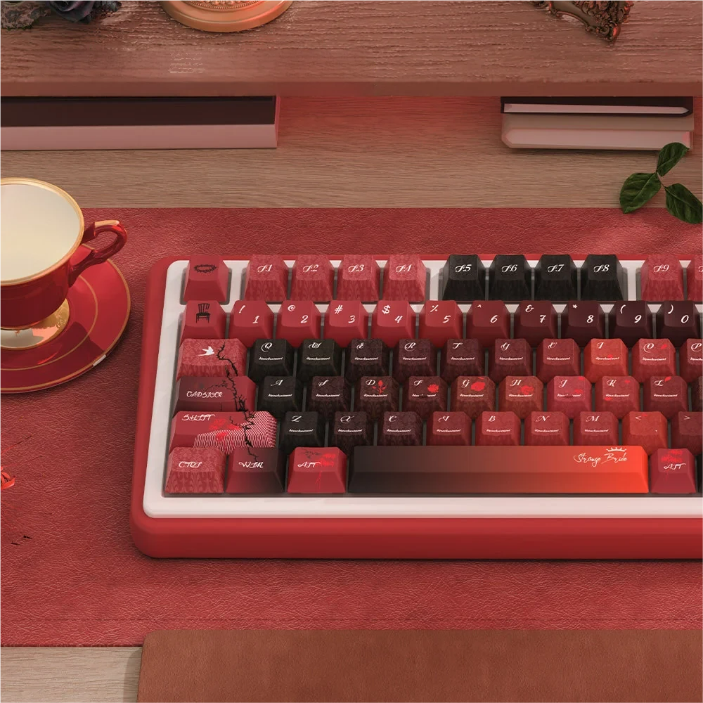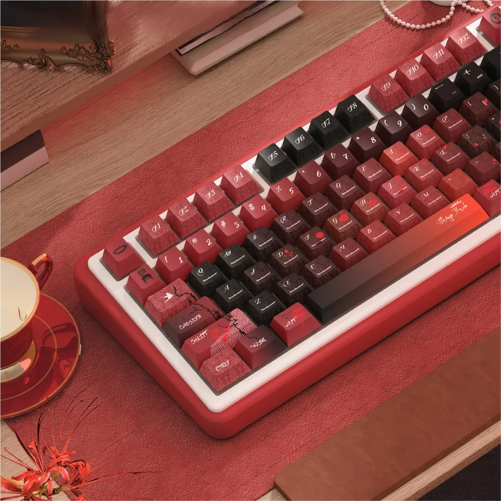 Unleash a captivating narrative on your keyboard with Grotesque Bride Cherry Keycap Set. This unique PBT keycap set transforms your setup into a canvas of dark romantic gothic aesthetics. Which featuring whimsical spectral bride motifs and intricate details that evoke fascination. Each keycap is a piece of art, meticulously crafted using advanced dye-sublimation technology to ensure the grotesque yet elegant designs are permanently vibrant and resistant to fading. Perfect for creators and enthusiasts seeking a distinctive gothic keyboard theme, these keycaps invite you to embrace a world of whimsical mystery. Elevate your typing experience with a touch of artistic flair, making every keystroke a journey into the enchanting tale of a spectral bride. Immerse yourself in the allure of the unknown and let your keyboard tell a story.