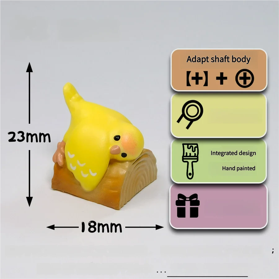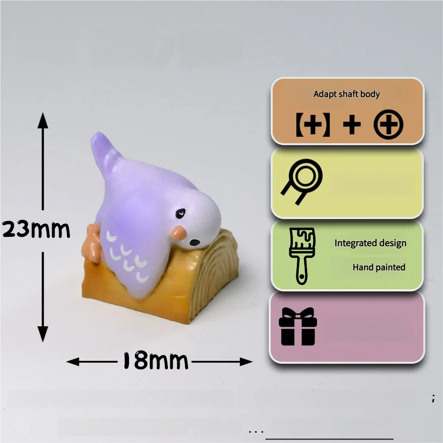 Transform your keyboard into a vibrant miniature sanctuary with our enchanting Parrot Hugging Stump Keycaps. More than just an accessory, this exquisite Parrot Keycap is a testament to whimsical artistry, meticulously sculpted to bring a burst of nature’s charm and playful personality to your setup. Each Handmade 3D Keycap features a delightful parrot perched on a rustic wooden stump, nestled amongst delicate peony blossoms, creating a captivating scene that invites delight and inspires creativity. This isn’t just a keycap; it’s a tiny, heartwarming companion for your desk. Perfectly compatible with Cherry MX switches, this Cute Bird Keycap is ideal for collectors seeking unique artisan pieces or anyone looking to infuse their workspace with a touch of handcrafted magic. Elevate your mechanical keyboard experience and let this charming Parrot Keycap be the centerpiece of your creative haven.