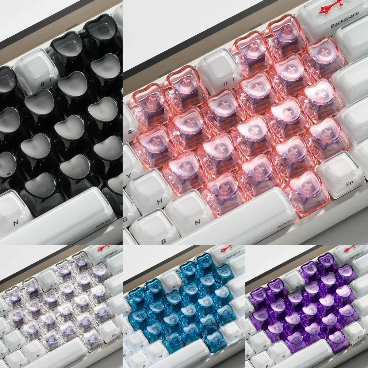 Unleash your keyboards true potential and express profound individuality with our premium Luminous Heart OEM Supplement Keycap Set. Each transparent blank keycap is meticulously crafted in a sleek, black heart shape, designed to capture and radiate the subtle glow of your keyboards RGB lighting, transforming your setup into a truly personalized and radiant statement. These exquisite heart keycaps are engineered for seamless compatibility with magnetic switch keycaps. Which ensuring a perfect fit and responsive typing experience for discerning users who demand both style and substance. Crafted in the popular OEM profile keycaps, they offer a comfortable and familiar feel, making them an ideal upgrade for extended gaming sessions or intensive creative work. Elevate your aesthetic, highlight your passion for gaming, and make every keystroke a celebration of subtle elegance. Discover the perfect blend of performance, personalized style, and captivating visual appeal with these unique heart keycaps.