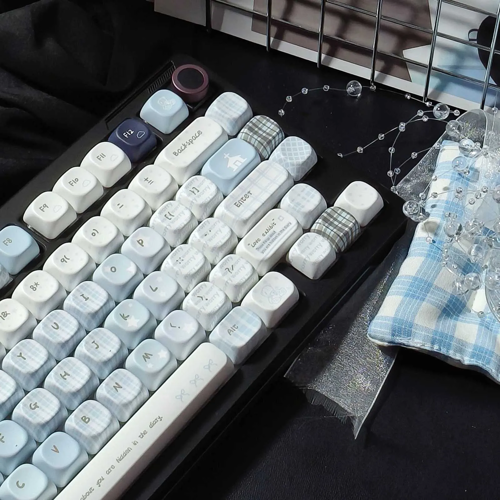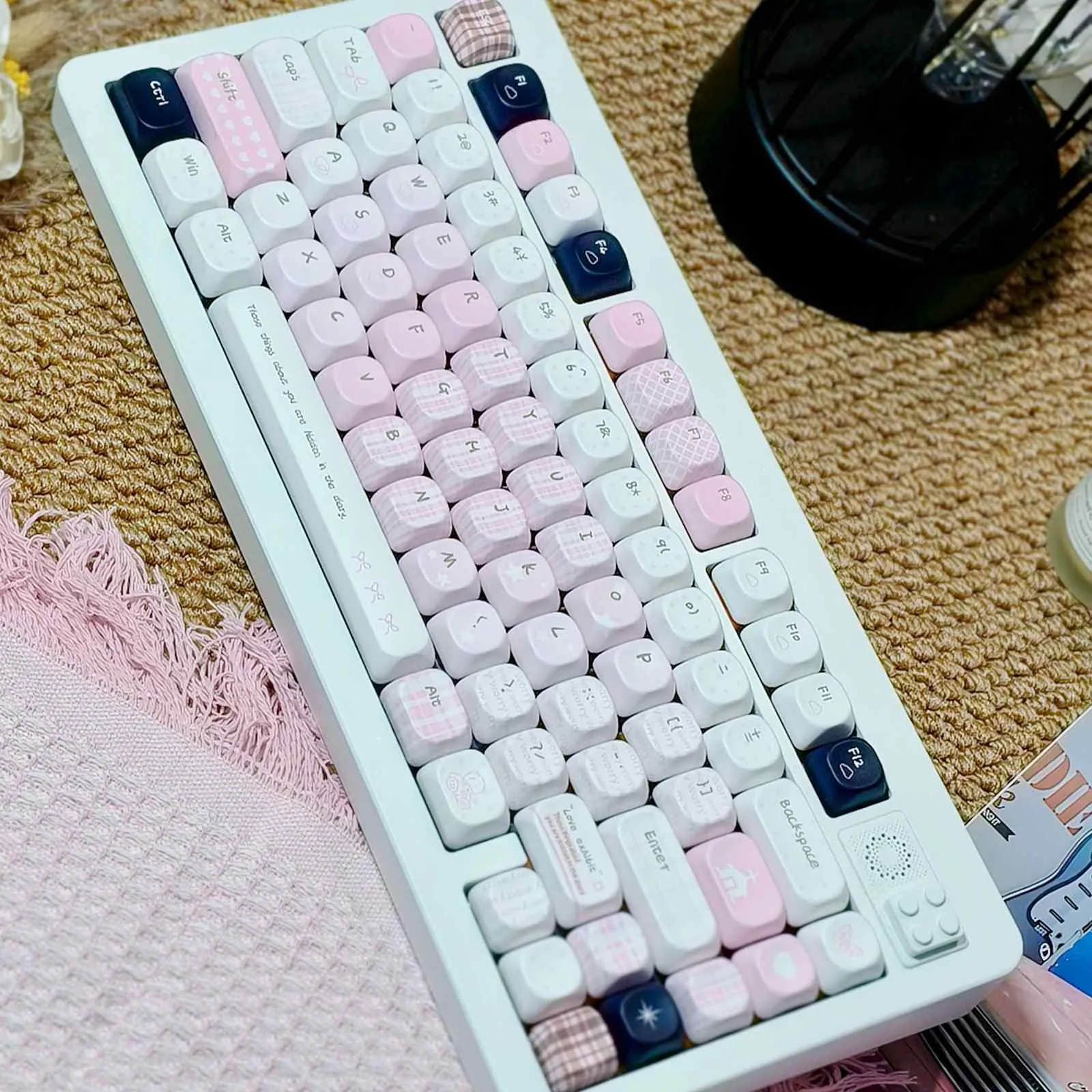Unveil subtle charm with the Hidden Feelings Series Keycap Set! This design combines adaptability, inventiveness and delicate beauty. While the Blue version blends serene blues with stark white and striking black. The Pink variant contrasts delicate pink hues with white and black keycaps. Cloud icons offer a whimsical touch and a delicate lattice design improves the appearance. Both OEM and MOA profiles are available and each one has two color choices or Bundle 2-in-1 Set. These keycaps which are made of sturdy PBT that guarantee fluid typing, enduring comfort and classic style. The Hidden Feelings Series turns your keyboard into a sophisticated way to express sentiment and flair.
