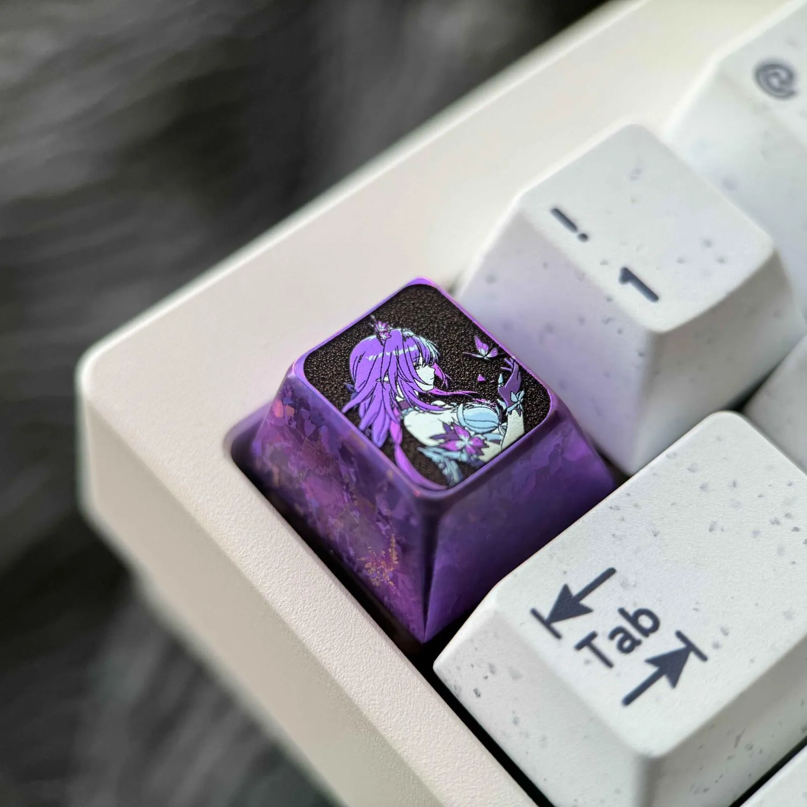 Elevate your gaming experience with the stunning Honkai: Star Rail: Castorice Keycaps! These keycaps which come in two eye-catching versions (Version A and Version B). That have eye-catching character designs that will improve any keyboard. The character is shown in Version A in a somewhat back view. Which exquisitely highlights her flowing purple hair against a sleek black background. Version B on the other hand that presents a side view that captures her essence in a dynamic manner. These 3D keycaps are made of sturdy titanium alloy. That are intended to be long lasting and aesthetically pleasing. These keycaps let your favorite character come to life which change your office into a lively gaming area. Making them ideal for any game enthusiast!