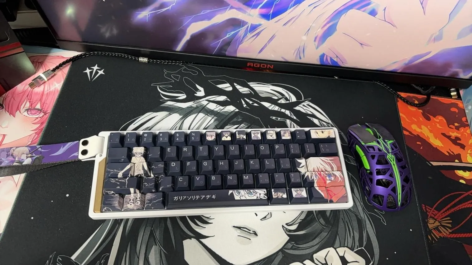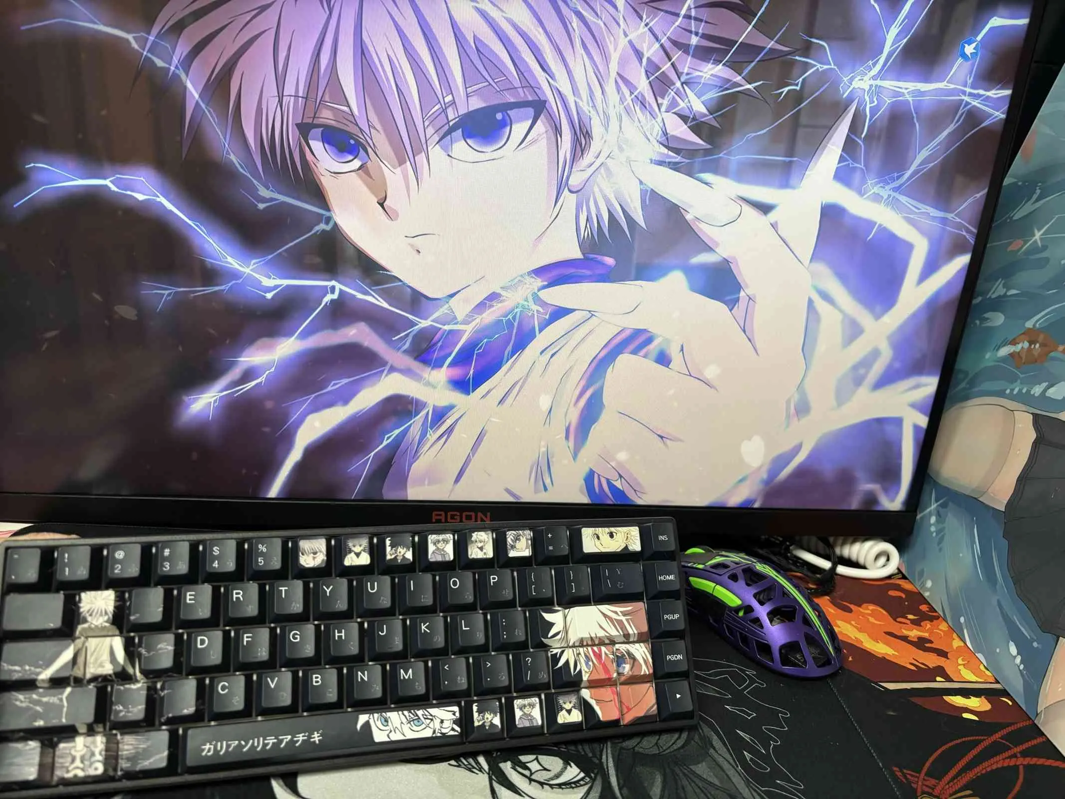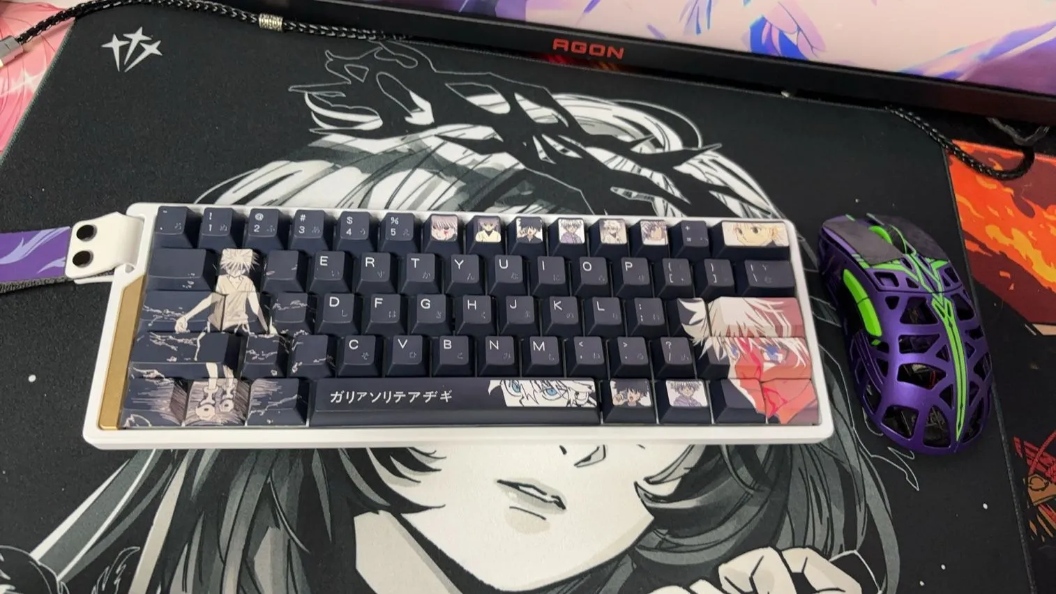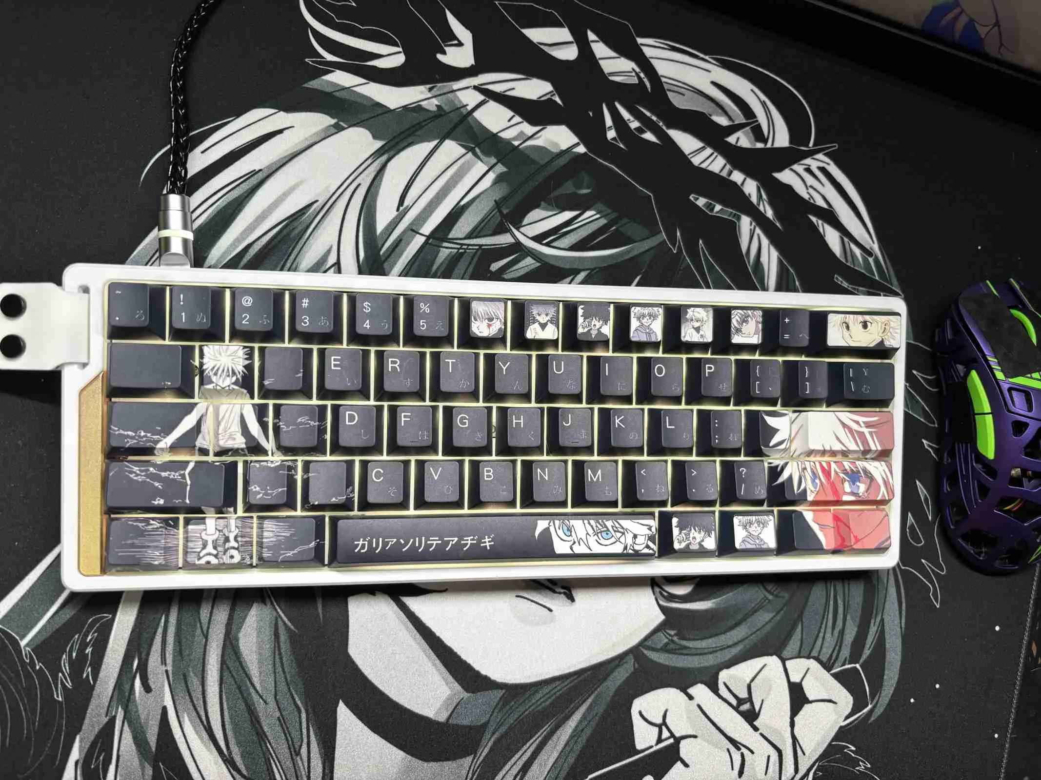 Transform your keyboard with the Hunter x Hunter: Killua Zoldyck Cherry Keycap Set! The sleek black keycaps in this eye-catching set give it a bold and elegant appearance. To ensure flair and clarity that each keycap is embellished with clean white lettering. The Space Key and Backspace Key are notable examples of distinctive character icon designs. That accentuate character’s allure design. These keycaps crafted by sturdy PBT material which ensures their quality and durability over time. This keycap set’s cozy Cherry profile not only makes typing more enjoyable. But it also gives fans a chic method to show off their admiration for Killua Zoldyck!