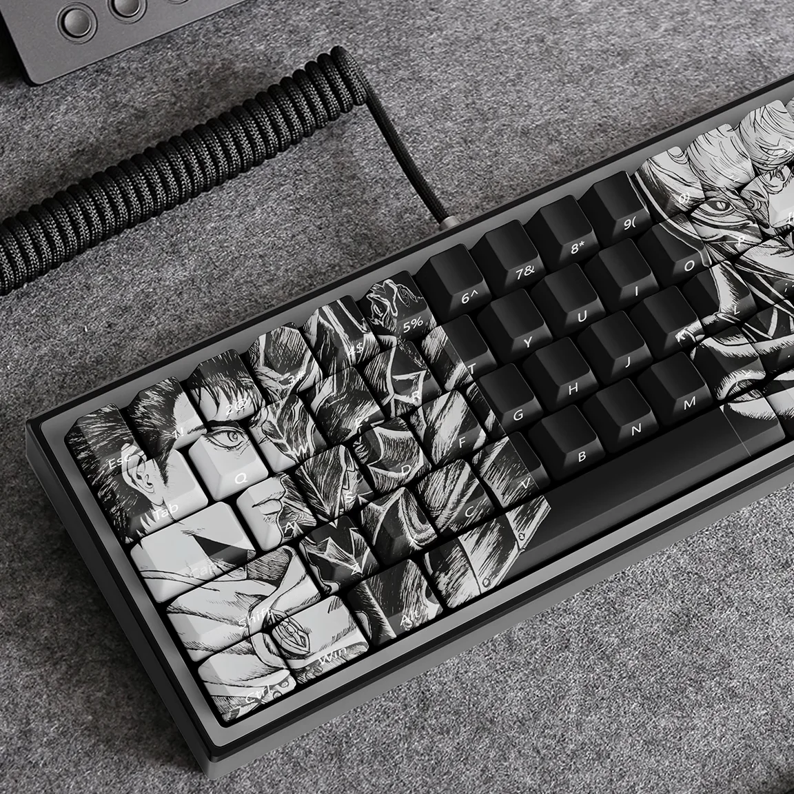 Dive into the gritty, dark fantasy world of Berserk with this Berserk: Iconic Characters Cherry Keycap Set. Designed for the true enthusiast, these exclusive Berserk keycaps embody the heroic spirit of Guts. That bringing unparalleled immersion to your desktop. Each legend is subtly side-printed, allowing your keyboard’s backlight to illuminate the iconic imagery, creating a dramatic and captivating effect. Crafted from premium PBT, these side-printed keycaps boast exceptional durability and a satisfying texture. The advanced dye-sublimation process ensures that the intricate designs will never fade, maintaining their striking visual theme for years to come. Perfect for fans seeking high-quality Anime gaming keycaps, this set transforms your keyboard into a powerful statement piece and a cherished addition to any collection. Elevate your experience and conquer the darkness with these artistic Berserk keycaps.