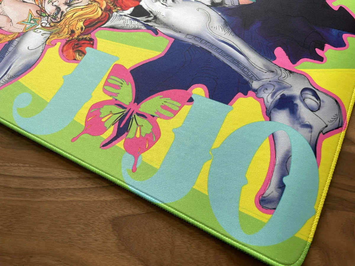 Dive into the iconic world of JoJo’s Bizarre Adventure with JoJo’s Bizarre Adventure: Narciso Anasui & Jolyne Cujoh Desk Mat. This stunning anime desk mat celebrates the powerful bond between Jolyne and Anasui, brought to life through vibrant, dynamic art. Perfect for any fan, its unique JoJo’s Bizarre Adventure character design transforms your desk into a battleground of style. Experience unparalleled excitement every time you game or work, as this custom gaming desk mat provides a smooth, precise surface for all your movements. Crafted to enhance your setup, it’s more than just a desk mat; it’s a testament to the thrilling adventures and unforgettable characters that define the series. Elevate your gaming experience and showcase your passion with this essential piece of fan merchandise.