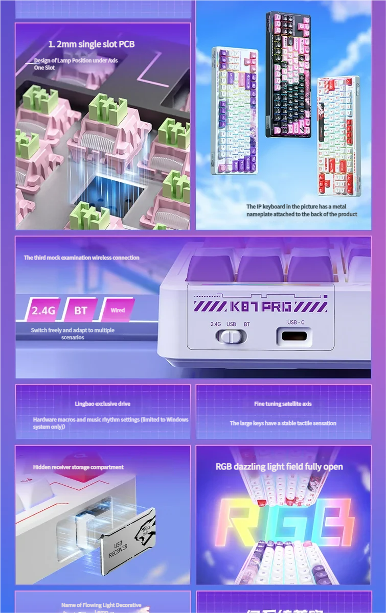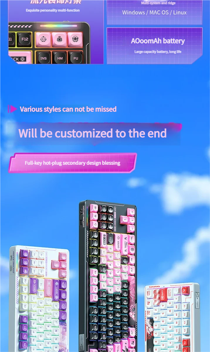 Unleash a world where cutting-edge performance meets enchanting artistry with the K87 SSA Tri-Mode Mechanical Keyboard, an extraordinary mechanical keyboard designed for the discerning individual. This tri-mode hot-swappable mechanical keyboard offers unparalleled versatility and a truly personalized typing experience, adapting seamlessly to your workflow. Each K87 is a canvas, featuring original artistic designs meticulously dye-sublimated onto unique SSA spherical keycaps. These whimsical, nature-inspired or fantasy-themed visuals transform your desk into a personal gallery, fostering elegance and creativity. Beyond its captivating aesthetics, the K87 excels in functionality. Its vibrant RGB gaming keyboard backlighting allows for dynamic customization, while the hot-swappable switches empower you to tailor your typing feel. Whether for intense gaming sessions, productive office work, or creative endeavors, this custom mechanical keyboard delivers a premium touch to every keystroke, embracing individuality and elevating your setup.