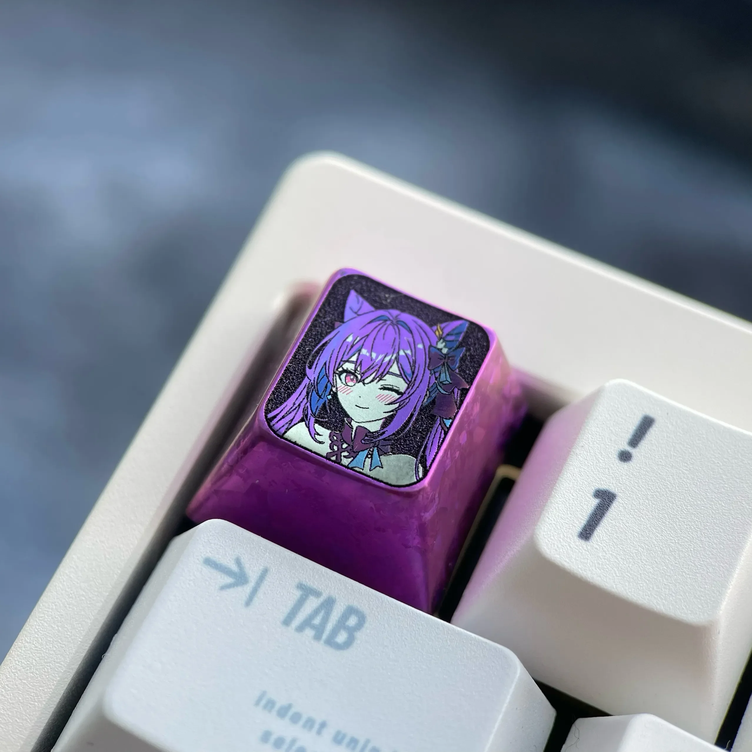 Unleash the majestic electro-power of Keqing onto your keyboard with this stunning titanium artisan keycap. Crafted for Genshin Impact enthusiasts and collectors, this premium Keqing keycap is more than an accessory; its a vibrant homage to one of Teyvats most iconic characters. Each Keqing keycap is meticulously fashioned from high-grade titanium and boasts a luminous ice crystal purple finish achieved through advanced anodization. This intricate process brings the electro-inspired aesthetics of Keqing to life, creating a unique metal keycap that truly stands out. Transform your gaming or creative setup into an epic display of passion and precision. Designed for exceptional feel and enduring luxury, this Genshin Impact keycap offers unparalleled personalization. Its a must-have for those who admire Keqing and demand the finest anime character keycap for their collection.