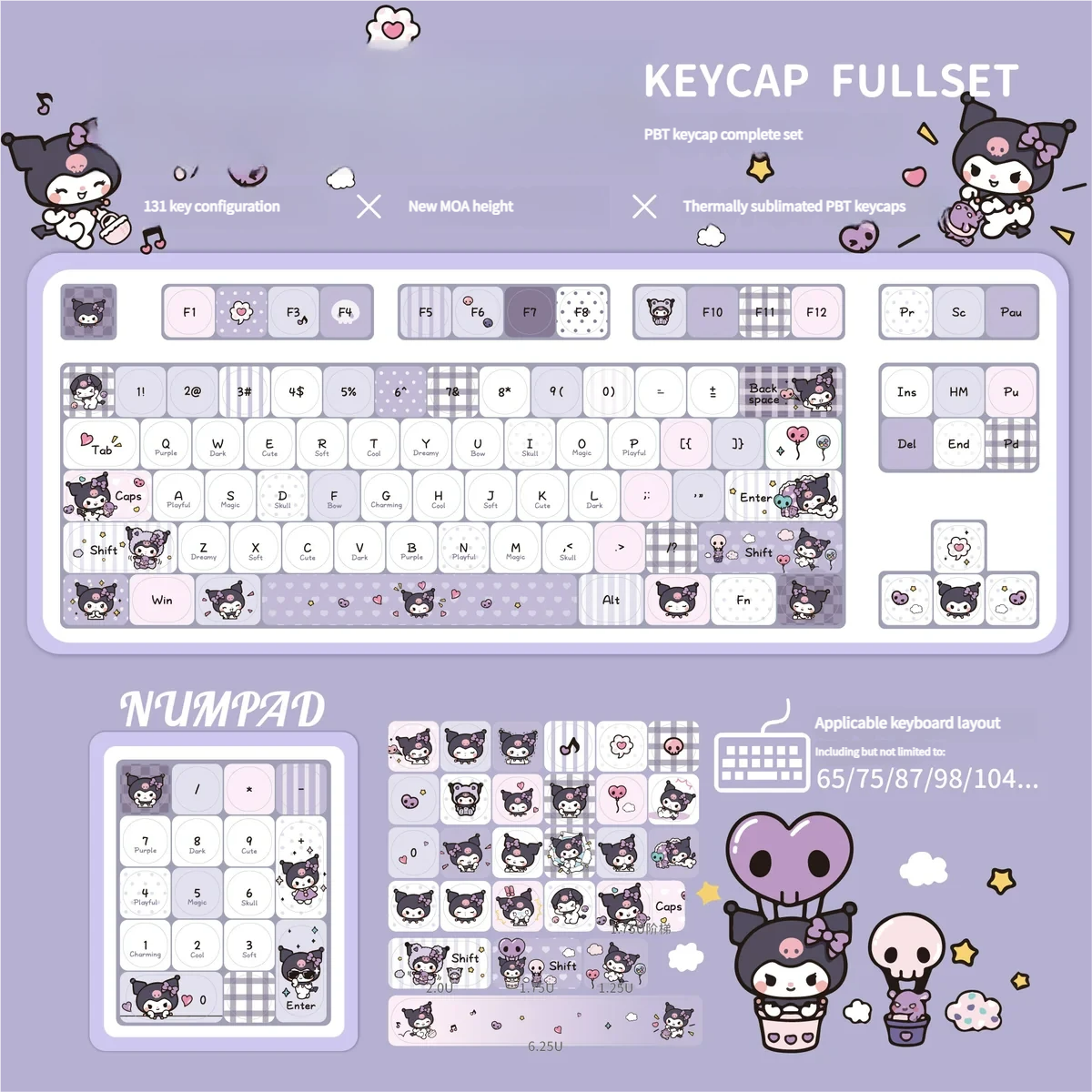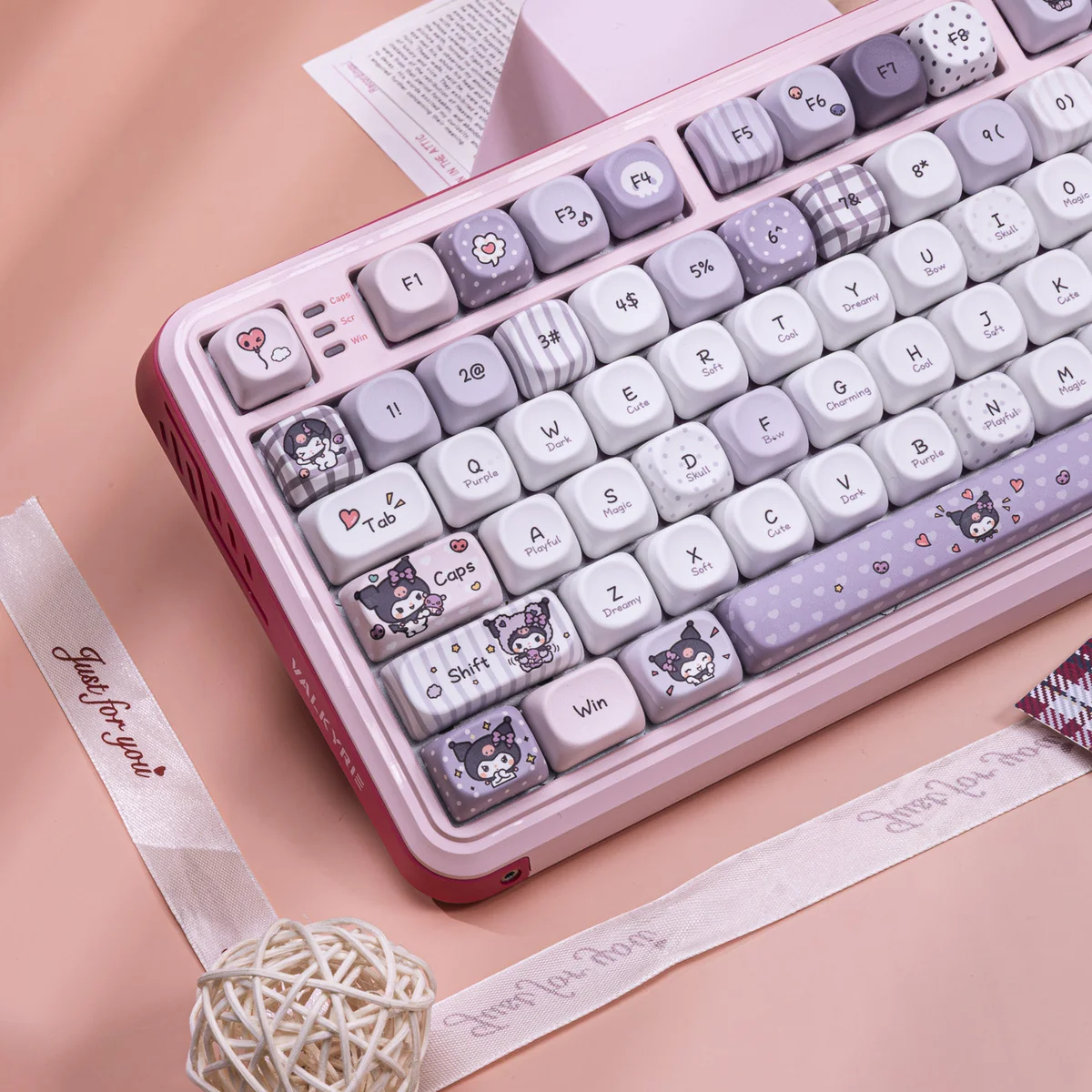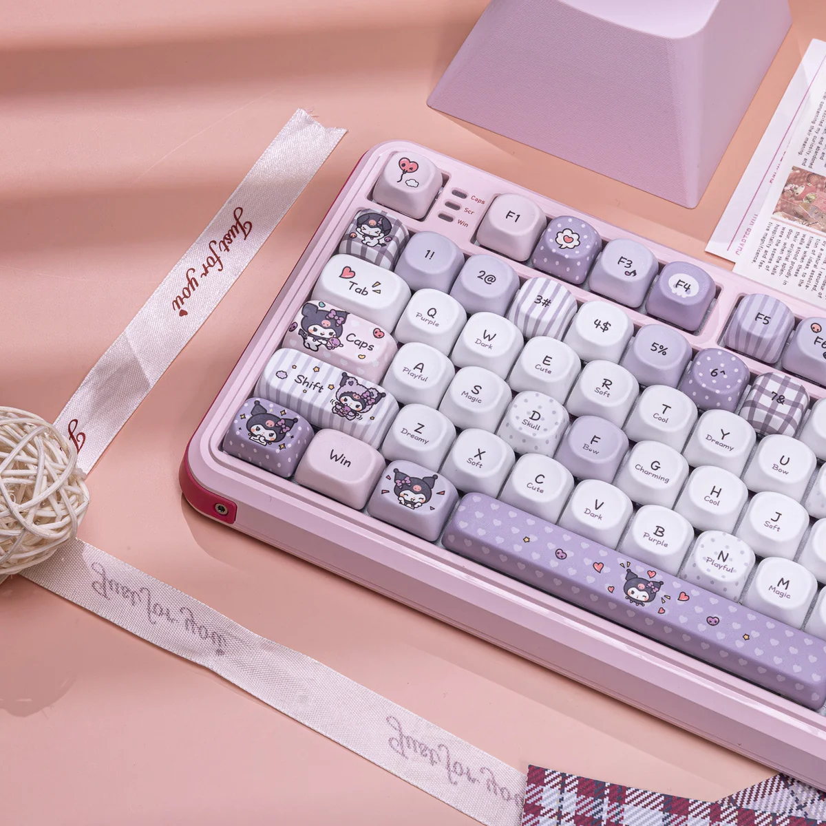 Dive into a world of playful rebellion and nostalgic delight with our Hello Kitty: Kuromi’s Diary MOA Keycap Set. Transform your mechanical keyboard into a personal canvas, celebrating Kuromi’s mischievous charm with every press. This isn’t just a Kuromi Keycap Set; it’s an invitation to relive cherished memories and express your unique style. Crafted from premium, thick PBT material, these Dye-Sub Kuromi keycaps promise exceptional durability and a satisfying typing feel that resists shine and wear. The vibrant, whimsical Kuromi diary illustrations, featuring playful purple accents. Which are permanently infused through an advanced dye-sublimation process, ensuring long-lasting color and crisp detail. Designed with an ergonomic MOA profile, these PBT MOA Keycaps offer a comfortable typing experience, making them perfect for both gaming and daily use. Whether you’re a devoted fan or seeking a truly Cute Keyboard Set, this collection is an essential upgrade for any enthusiast looking.