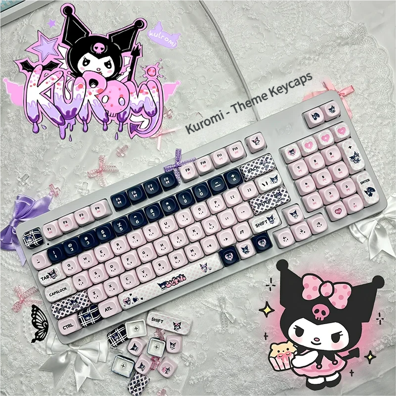 Get ready to transform your setup with these utterly adorable yet mischievously edgy Kuromi keycaps set! Embrace your unique personality and playful rebellion with every click. Featuring the iconic Kuromi design, this full set of Sanrio keycaps brings a gothic-kawaii aesthetic of black, pink, and white to your desk. Crafted from high-quality, durable PBT, these PBT dye-sub keycaps ensure legends that won’t fade or wear, even through intense gaming sessions or creative workflows. The comfortable and ergonomic MOA profile keycaps provide a delightful typing experience, making your cute mechanical keyboard not just a tool, but a statement piece. Whether you’re a collector, a gamer, or simply love personalized accessories, these Kuromi keycaps are designed to spark excitement and elevate your style. It’s time to let your keyboard reflect your bold, fun spirit!