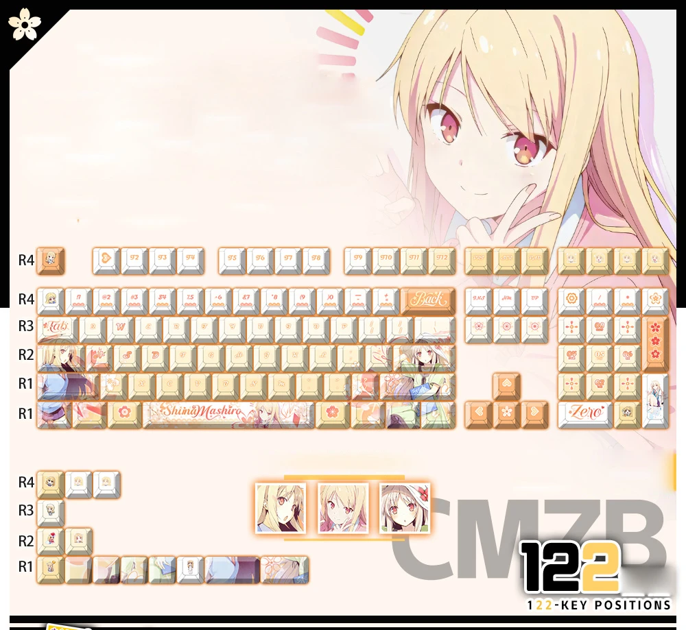 Enter the beautiful world of The Pet Girl of Sakurasou with the Mashiro Shiina Cherry Keycap Set & Mechanical Keyboard. This enthralling set, which is intended for both fans and aficionados, includes premium PBT keycaps with exquisite Mashiro Shiina artwork, putting her creative soul right at your fingers. While the eye-catching orange Esc key, which also has Mashiro Shiina’s design, provides a lovely contrast that contributes to its attractiveness, the stunning white and yellow color scheme lends a bright touch to your workstation. This keycap set enhances your typing experience and lets you show off your passion for this cherished anime. It works well with the majority of mechanical keyboards. Make your desk a creative sanctuary and use Mashiro to motivate your everyday chores!